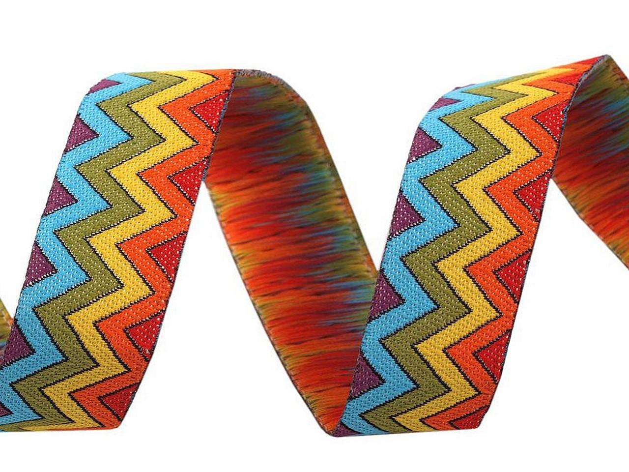 Vzorovku zdobí veselý barevný cik cak vzor. Je pevná. Využijete ji nejen k ozdobení oděvů, například halenek, mikin, šatů, kabátů, ale také doplňků jako jsou tašky, klobouky, deky, polštáře a ubrusy. Můžete ji použít i na karnevalové kostýmy.