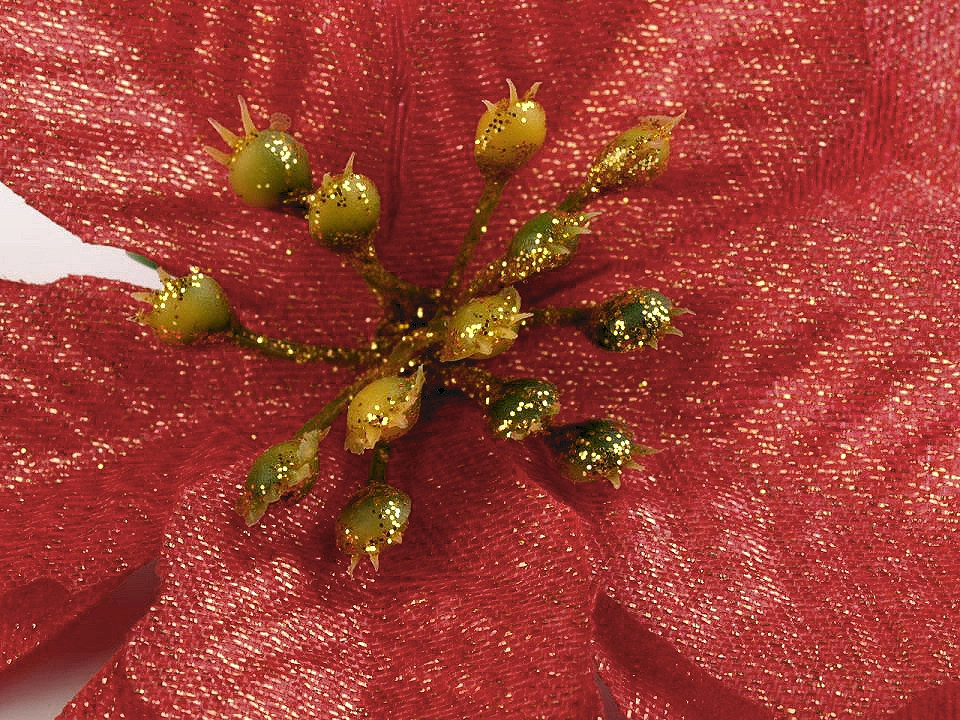 Umělá vánoční hvězda s vetkanými lurexovými vlákny je okouzlující díky svého jemného třpytu.