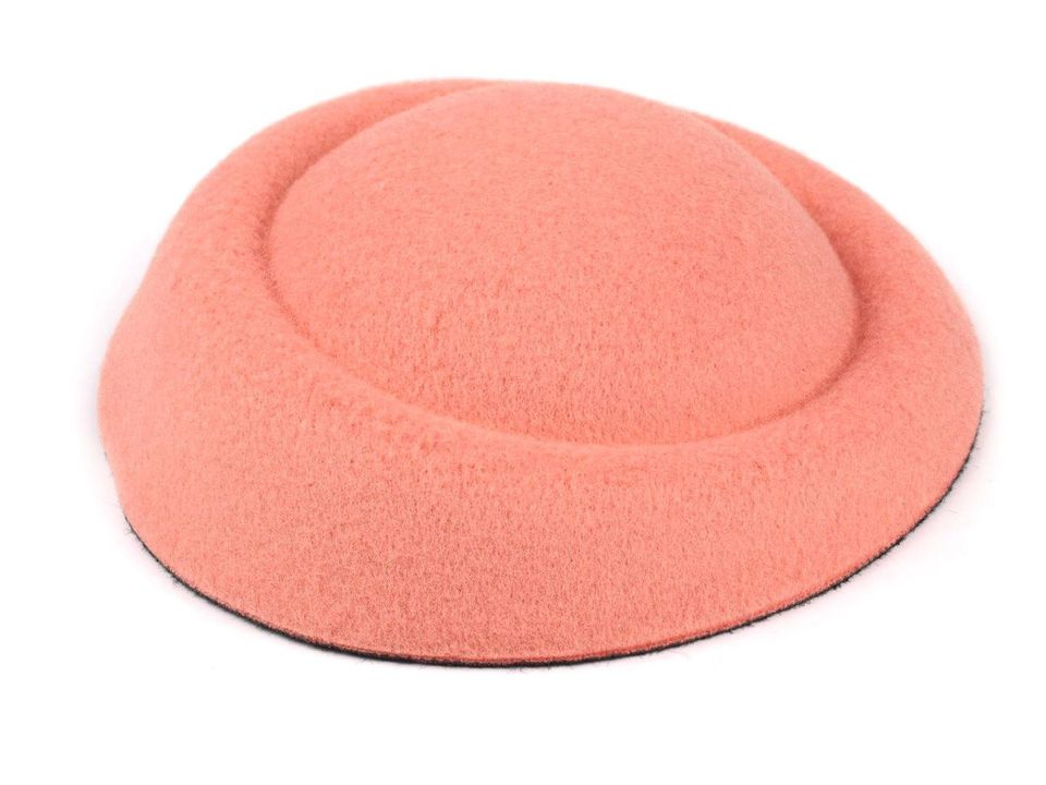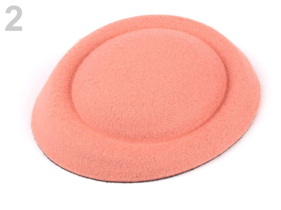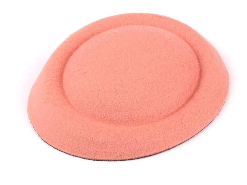 Tvarovaný semišový polotovar určený pro tvorbu fascinátoru. Můžete jej použít i jako kloboukový základ pro koktejlový klobouček.