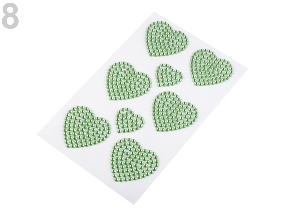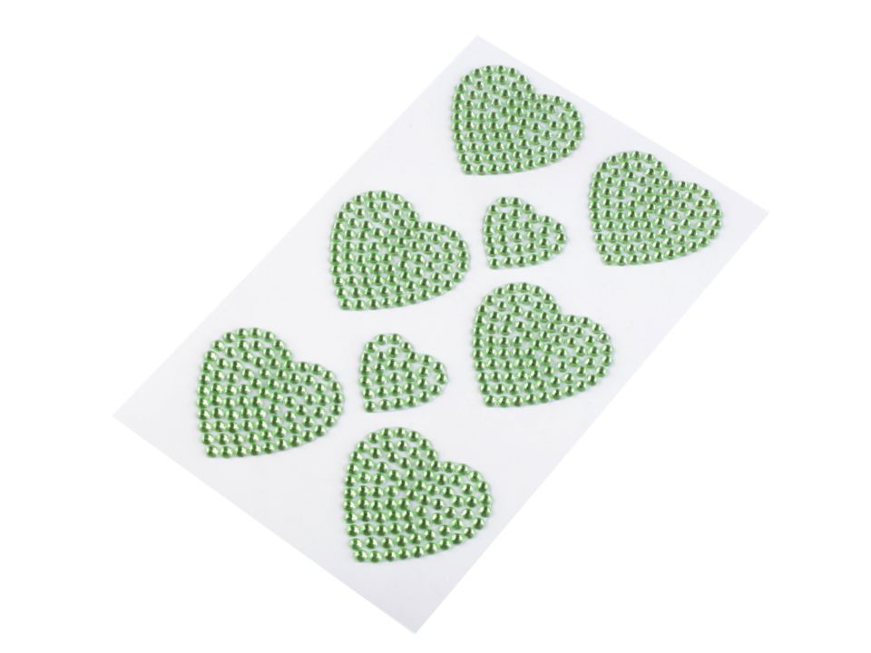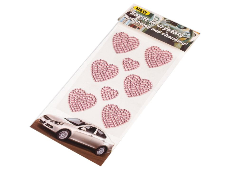 Působivé samolepky srdcí jsou z třpytivých plastových kamínků.