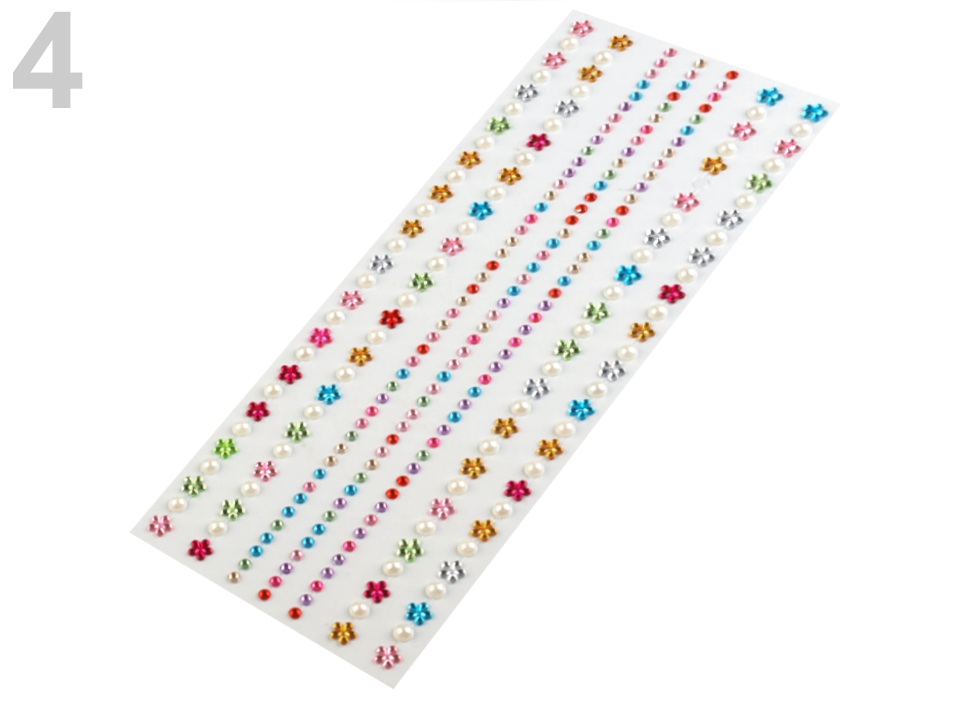 Kulaté kamínky v prostředních řadách mají průměr 4 mm. Všechny jsou nalepené na jednom archu podkladové folie, ze které je stačí sejmout.