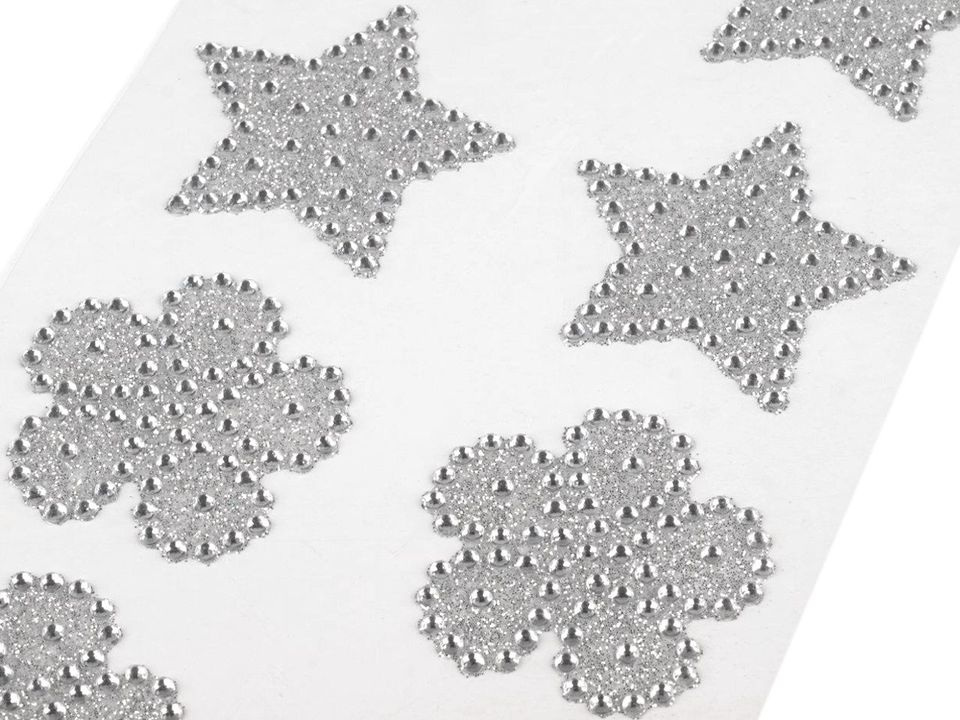 Třpytivé samolepky hvězd a květin vás nadchnou především díky glitrům a lesklým kamínkům. Využijete je v technice scrapbooking. Jsou vhodné na zdobení foto rámečků, alb, přáníček, pozvánek, krabiček apod. Využívají se k ozdobení mobilů, tabletů, počítačů, palubních desek v automobilech atd.