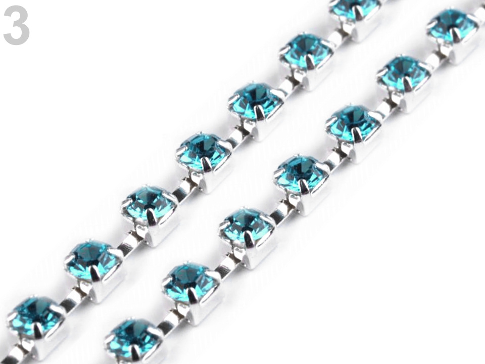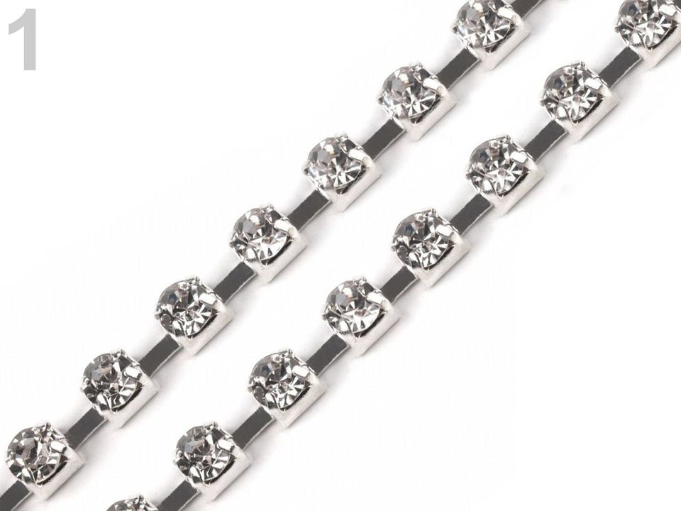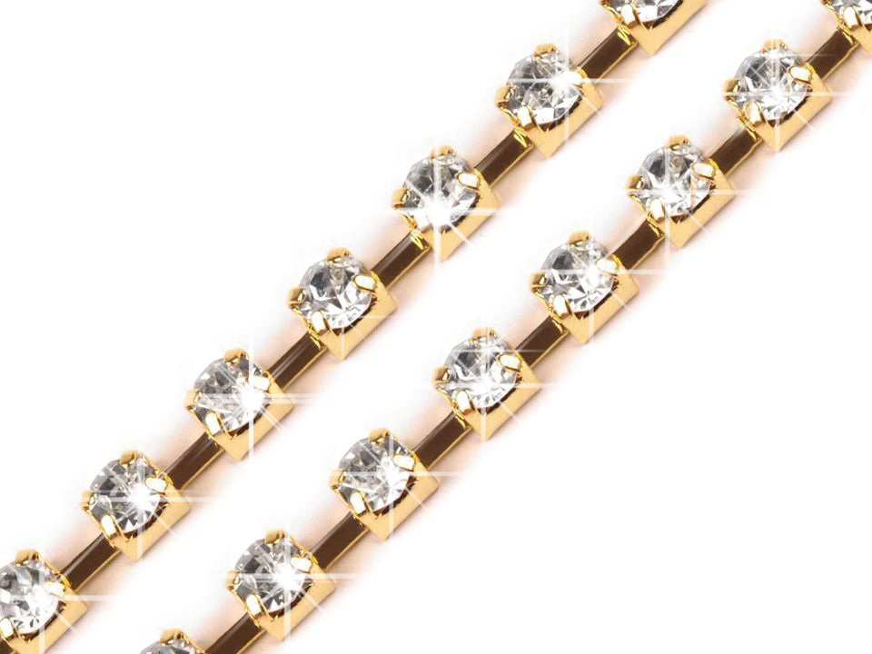 Luxusní bižuterní řetízkovou bortu zdobí třpytivé broušené kamínky, které jsou vsazené do kovových lůžek. Bortu můžete tvarovat do obloučků, její propojené články jsou pohyblivé.
