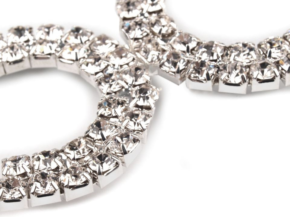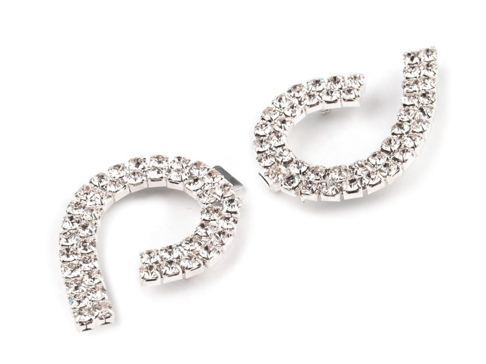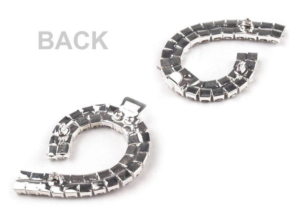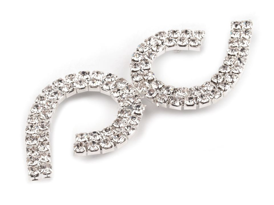 Štrasové zapínání se skládá ze dvou částí, které připomínají neúplné kapky. Má pevná očka, za která ho jednoduše přišijete. Celé je osázené třpytivými broušenými kamínky.