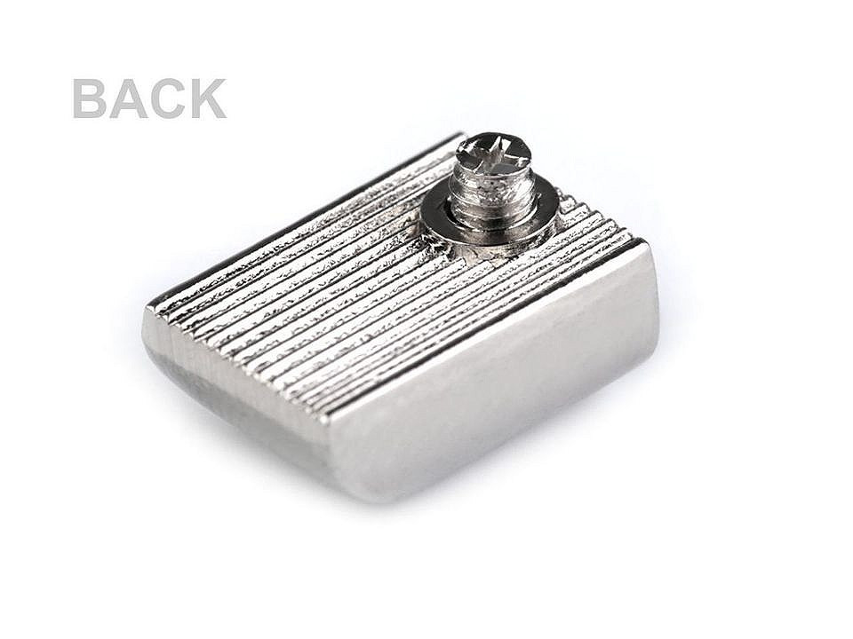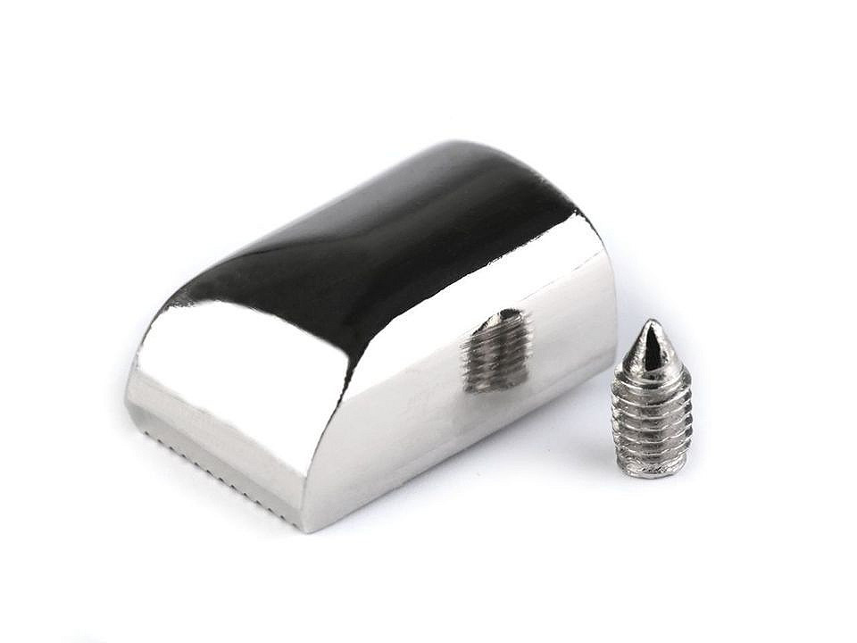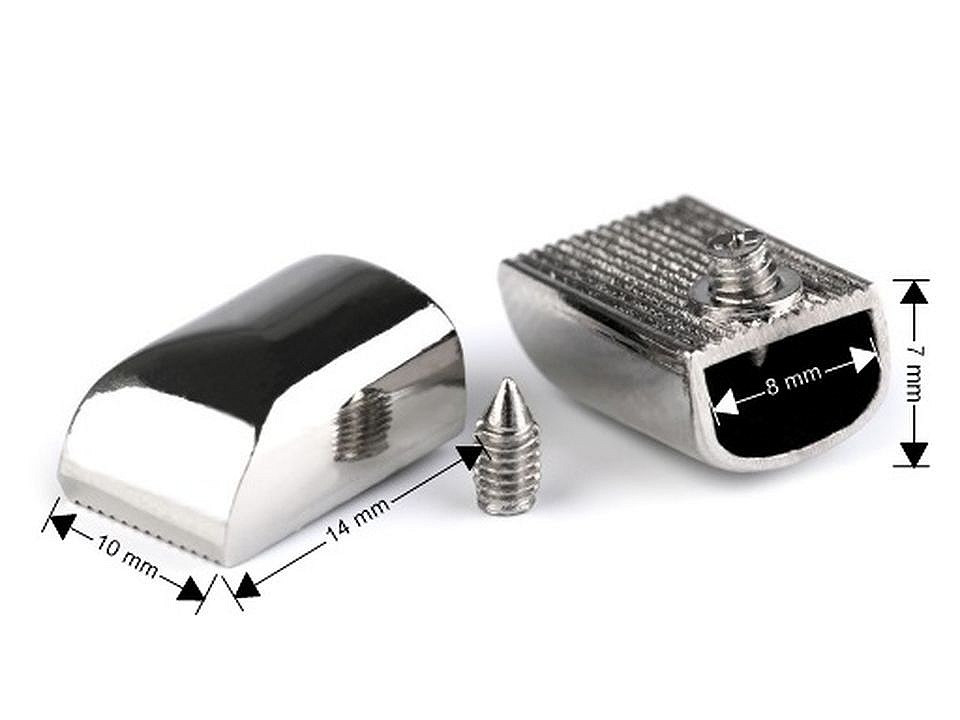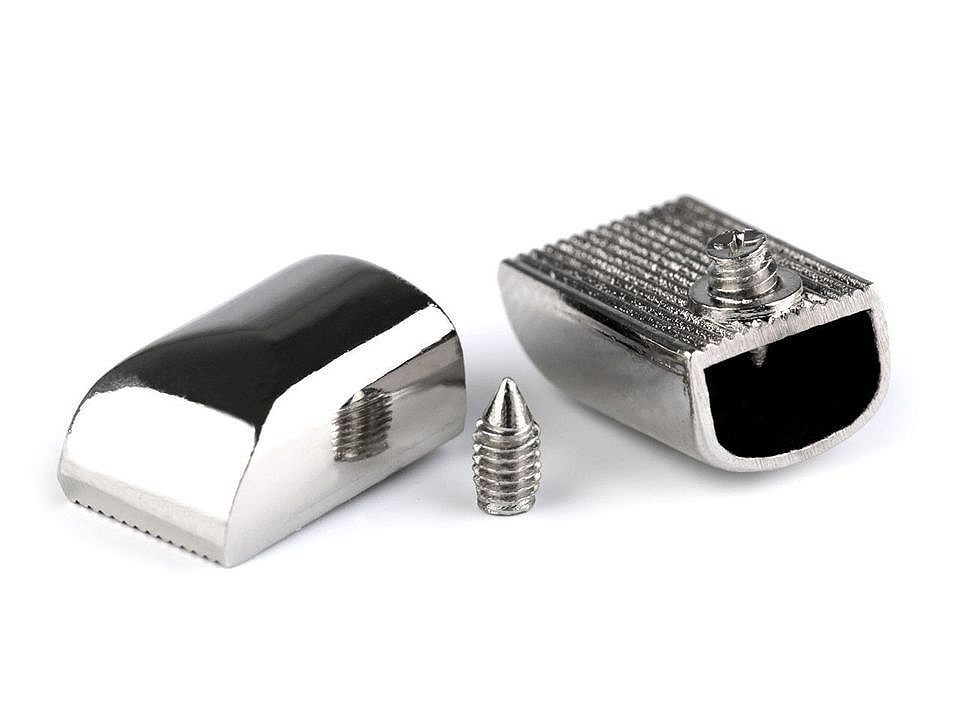 Elegantní kovovou koncovku využijete na zakončení zipu, převážně u kabelek nebo tašek. Schováte do ní nevzhledné konce a šroubkem je zespodu přišroubujete, aby koncovka nevypadla.