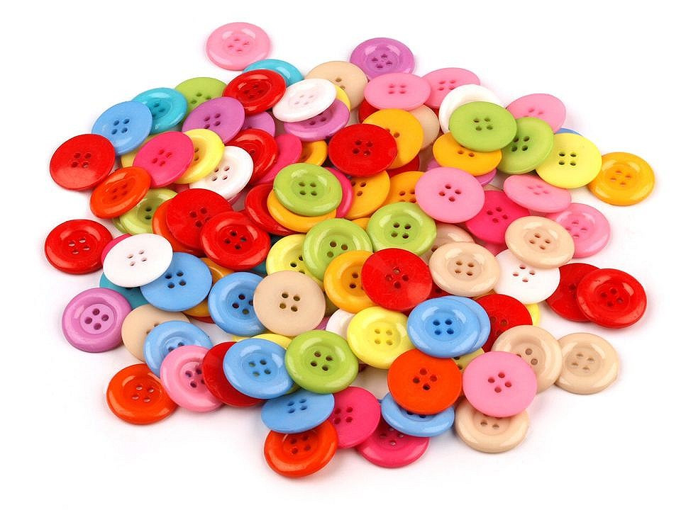 Čtyřdírkové knoflíky vás zaujmou svou pestrou barevností. Vesele oživí oděvy, doplňky nebo různé dekorace. Využijete je i na zdobení foto rámečků, alb, pozvánek, přáníček apod. Jsou vhodné také na výrobu různých dekorací.