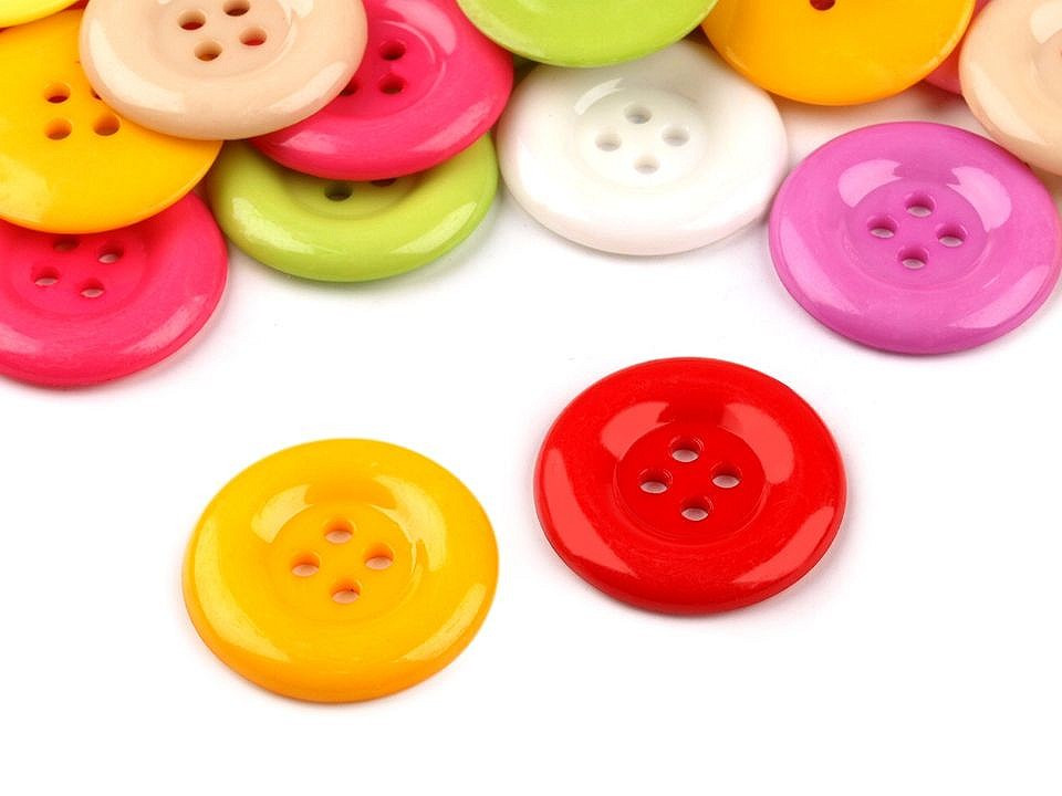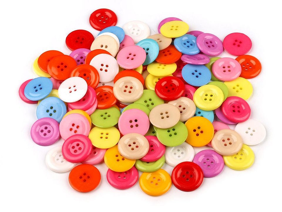 Čtyřdírkové knoflíky vás potěší svými pestrými barvami. Vesele oživí oděvy, doplňky nebo různé dekorace. Využijete je i na zdobení foto rámečků, alb, pozvánek, přáníček apod. Jsou vhodné také na výrobu různých dekorací.