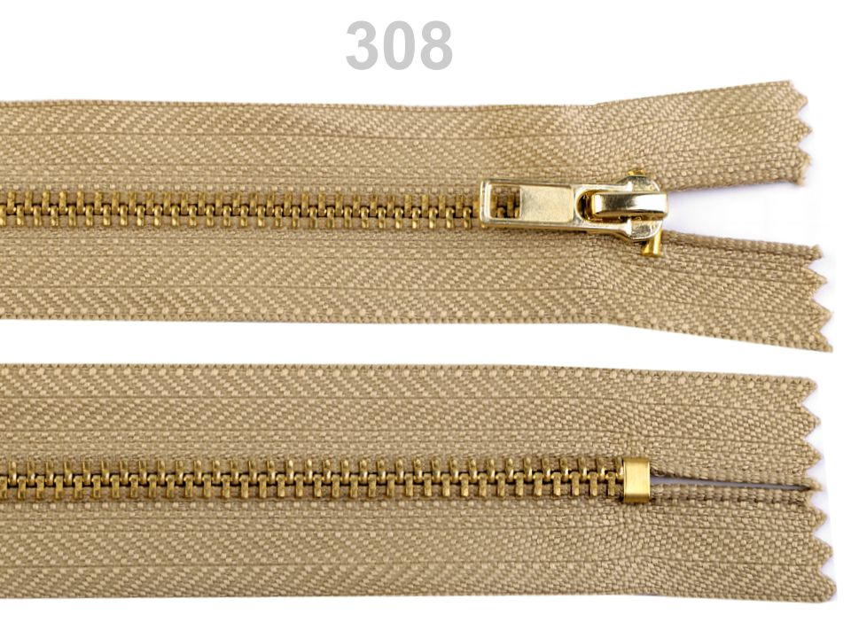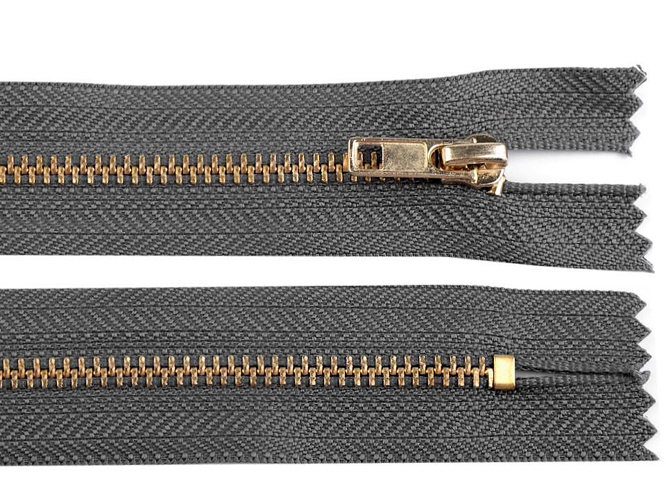 Mosazný zip je vhodný k našití na kalhoty, mikiny, trička nebo menší tašky.