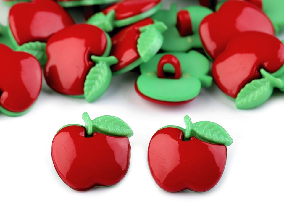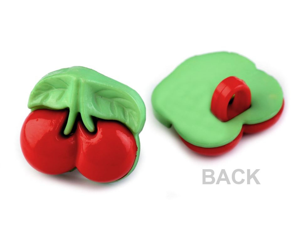 Dětské plastové knoflíky ve tvaru ovoce působí vesele a lákají k zakousnutí. Vyniknou našité na dětském oblečení a doplňcích.