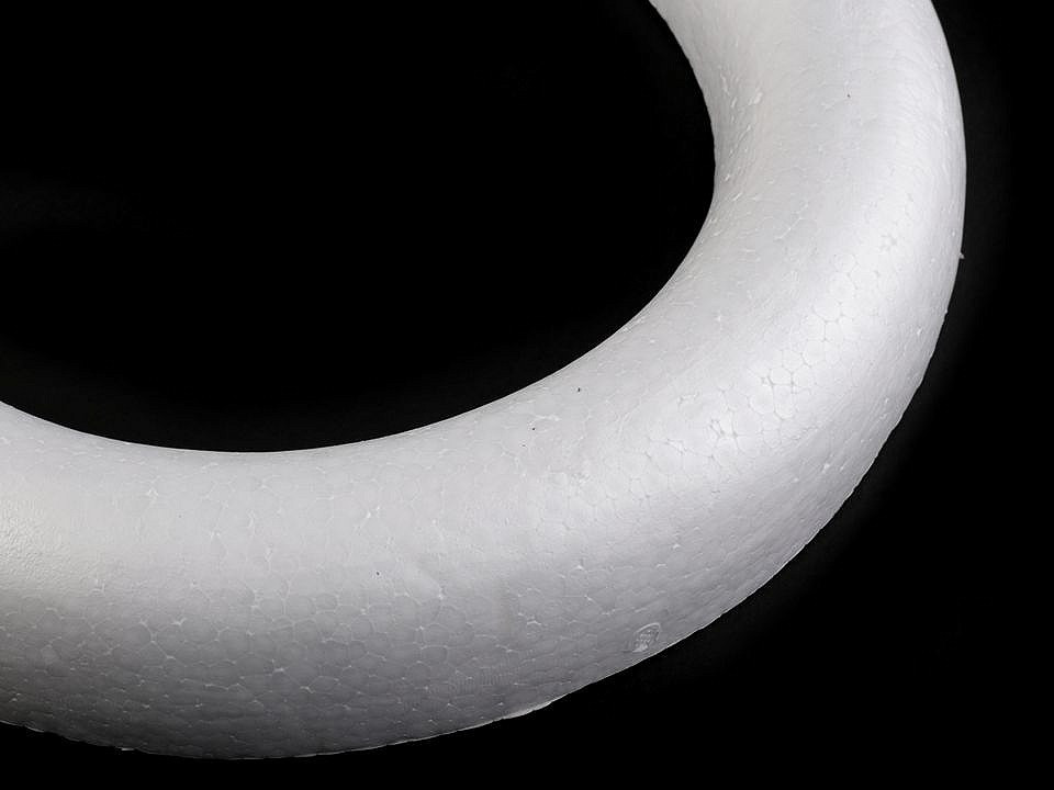 Seříznutý polystyrenový věnec využijete k aranžování. Můžete ho ozdobit stuhami nebo umělými rostlinami a plody a vytvořit si originální podzimní, vánoční či velikonoční dekorace.