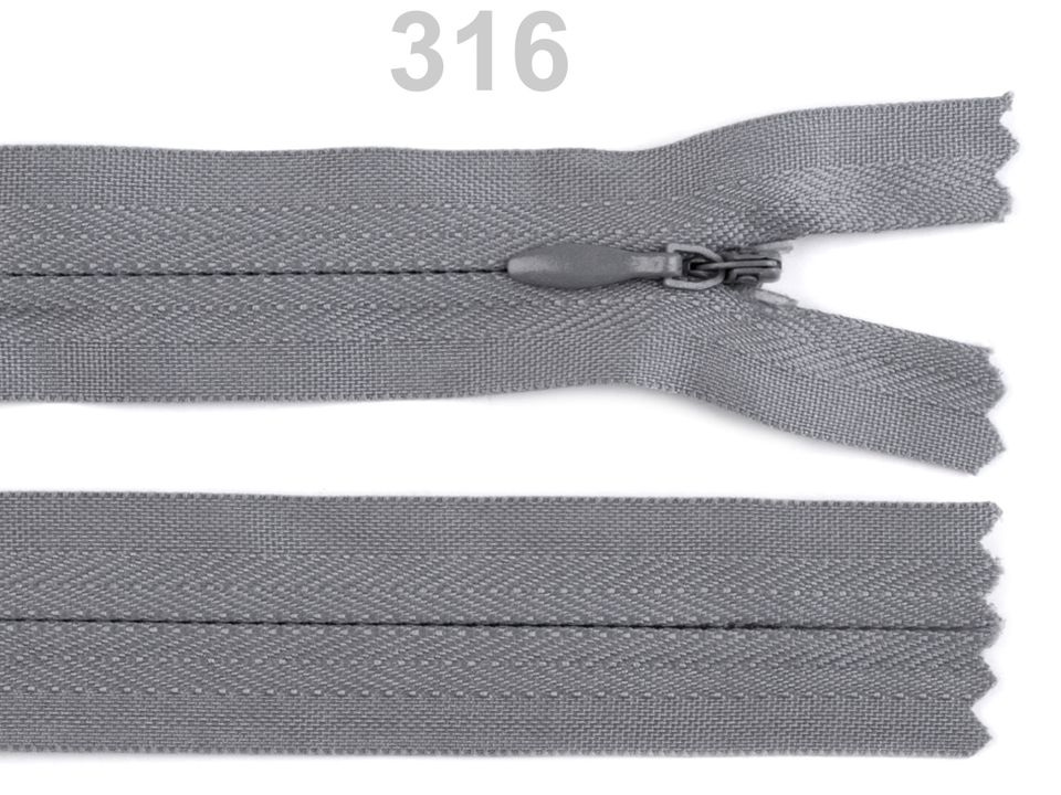 Spirálový zipje nedělitelný. Díky zakrytí spirály je po našití prakticky neviditelný.