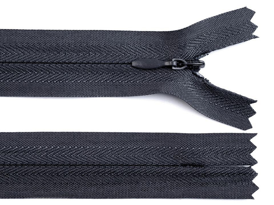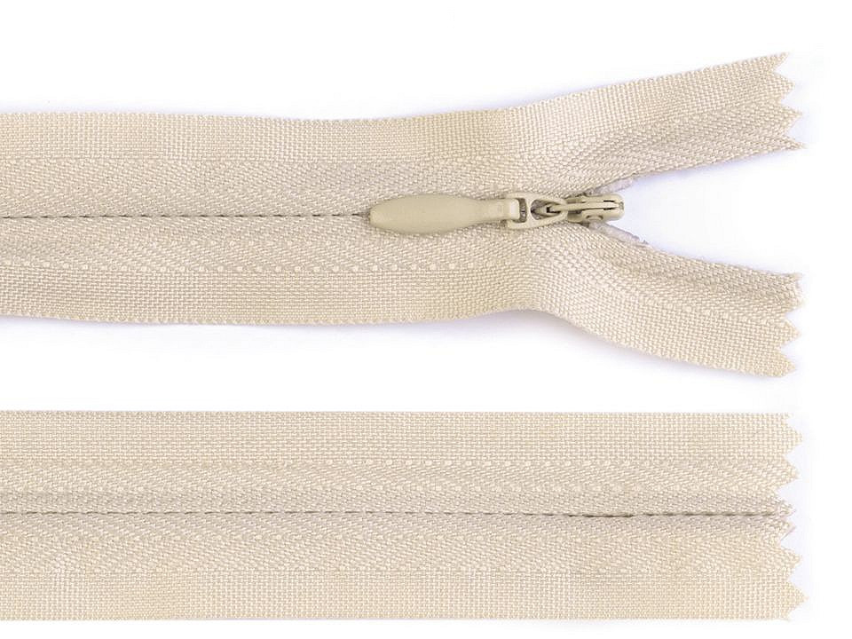 Skrytý spirálový zip je díky zakrytí spirály po našití prakticky neviditelný.