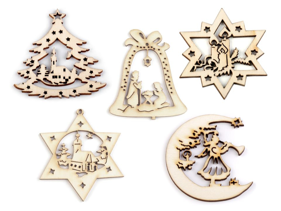 Dřevěný výsek s vánočními motivy je vyřezaný laserem. Můžete ho pověsit na stromek, věnec apod. Využijete ho také ve scrapbookingu, na výrobu a zdobení alb, přáníček či diářů. Výsek je možné přilepit lepidlem, oboustrannou lepící páskou nebo za pomocí dalších scrapbookingových lepících doplňků. Můžete si je domalovat, lakovat, atd.