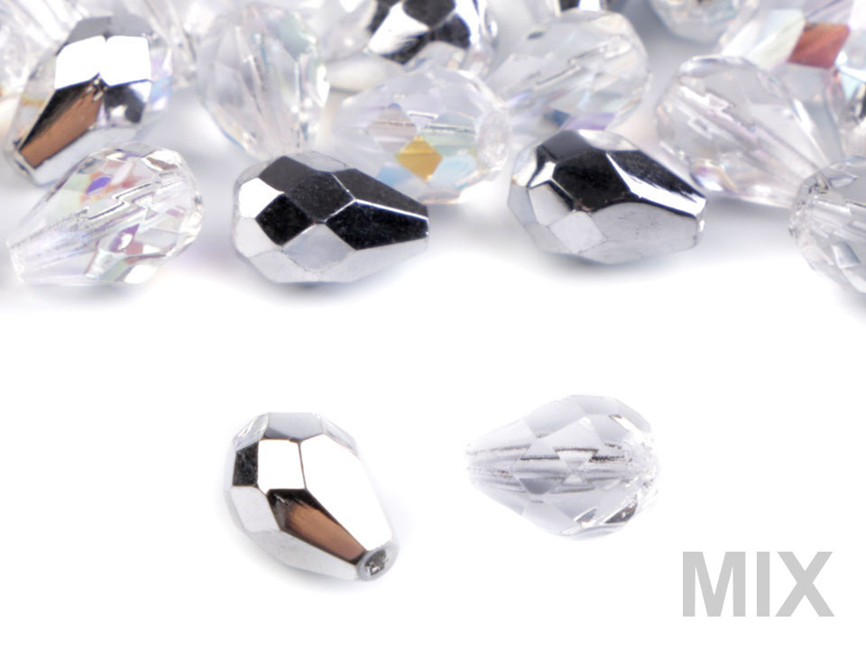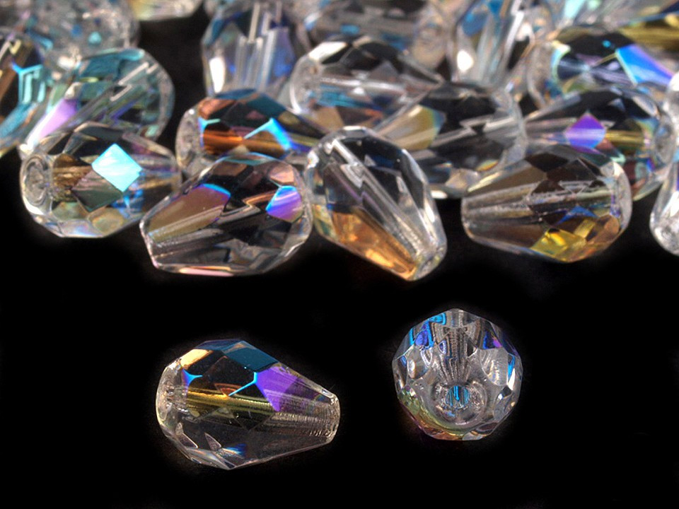 Barevný mix broušených perlí ve tvaru kapek, vás nadchne především svým vysokým leskem, který vytváří dojem luxusu. Některé kapky mají povrch zušlechtěný irisováním.