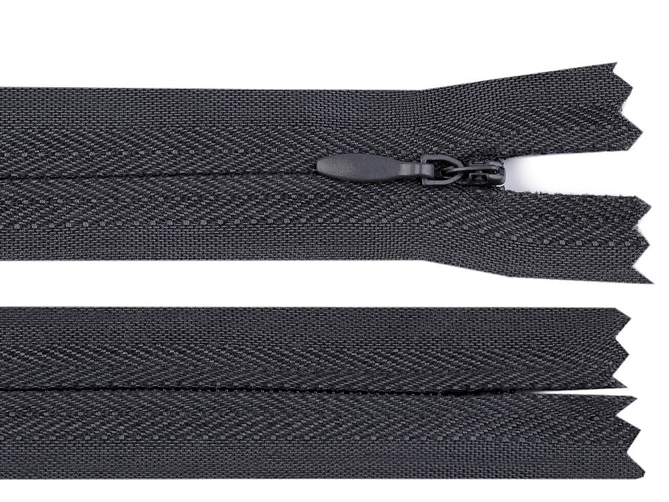 Spirálový nedělitelný zip je díky zakrytí spirály po našití prakticky neviditelný.