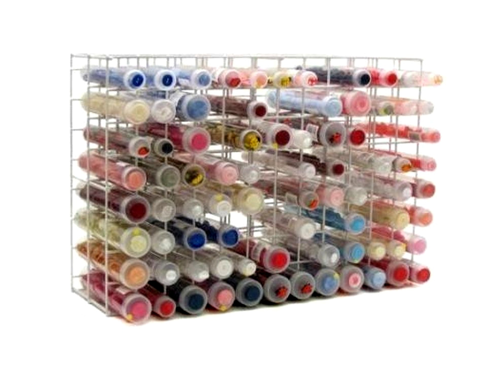 Skládá se z 8 pater a 12 sloupců. Celkově stojan pojme 96 tub s knoflíky.