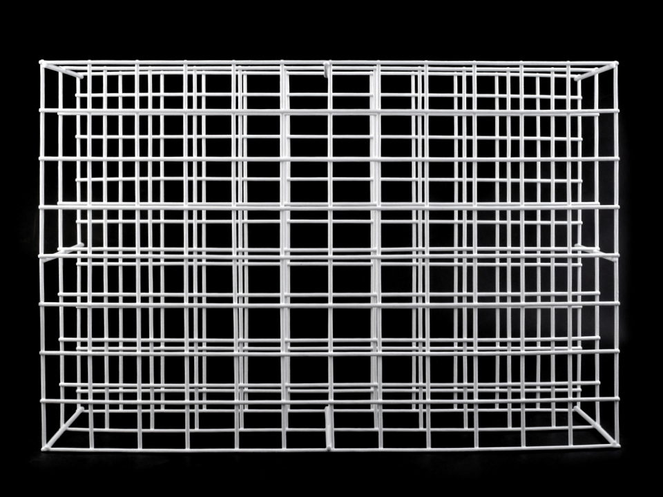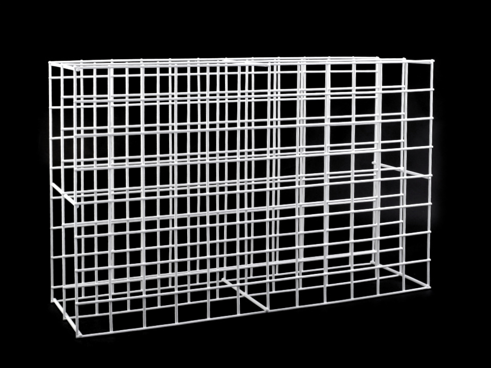 Kovový stojan slouží k uskladnění tub s knoflíky. Je mřížkovaný. Rozměry jednoho čtverečku jsou 4 x 4 cm.