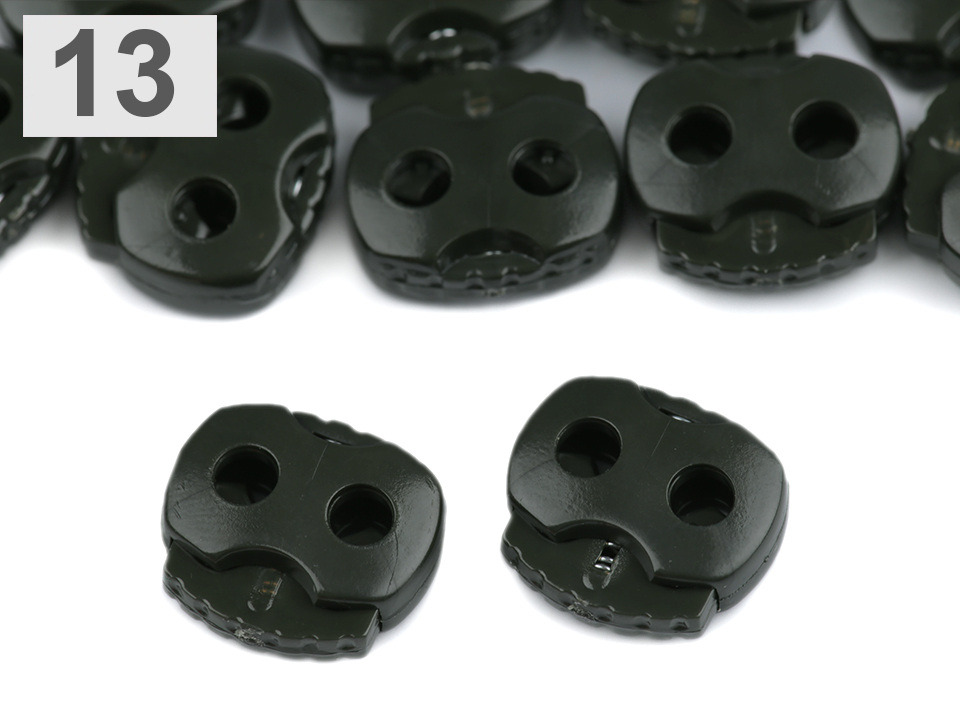 Brzda se používá jako součást oděvů a bund pro efektní ukončení šňůrek. Uvnitř brzdičky je strunka která zajišťuje pevnější uchycení. Rozměr brzdy je 15 x 15 mm, průměr dírky 3 mm.