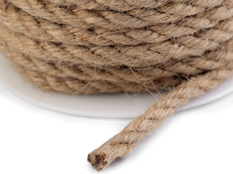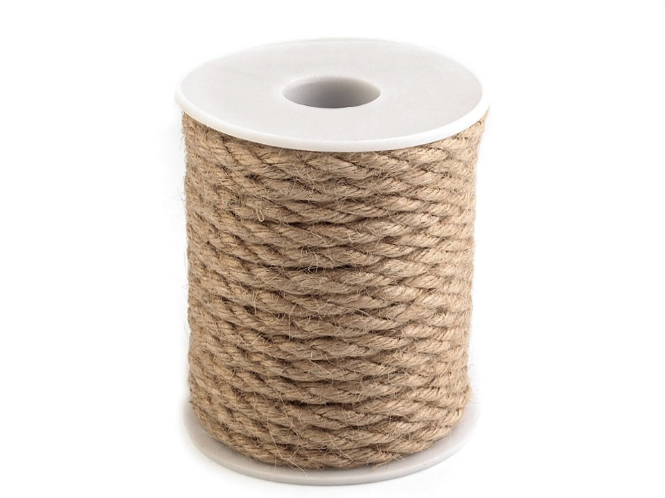Kroucenou jutovou šňůru využijete k dekoračmím účelům, převážně ve floristice. Je pevná a spletaná ze tří tenčích šňůr.