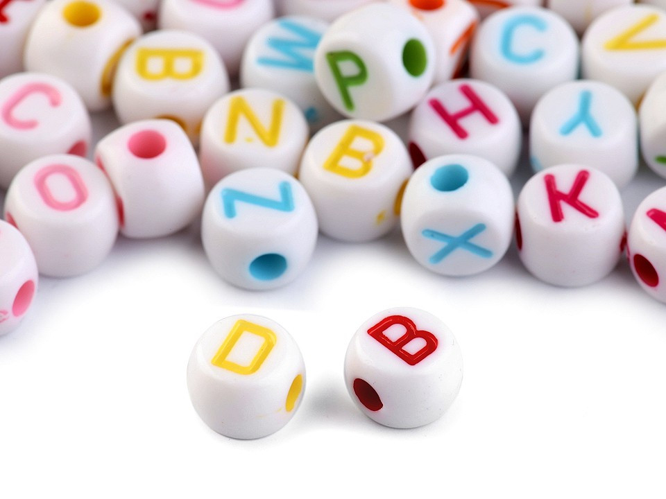 V sáčku je mix různých písmen různých barev. Sáček nemusí obsahovat všechny kombinace písmen z abecedy, jednotlivá balení se od sebe mohou lišit. V jednom sáčku je 50 ks korálků.