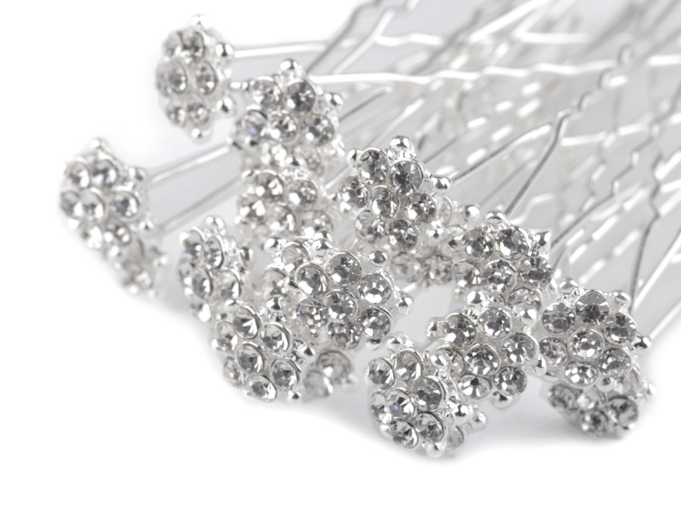 Elegantní štrasové vlásenky ve tvaru květu každý účes povýší nejméně o dvě třídy výš.