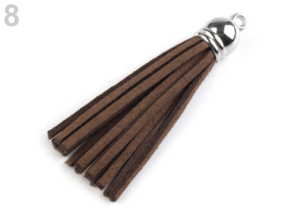 Přívěsek v podobě třásní je zasazený v plastovém kaplíku s očkem, díky tomu má univerzální využití.