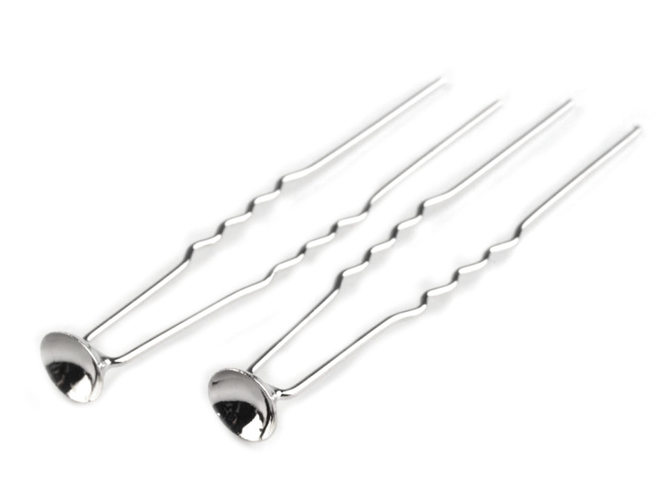 Kovová vlásenka s malým kotlíkem, do kterého můžete vlepit korálek, látkový či kovový květ a jiné ozdoby. Obzvlášť působivé jsou voskované perle.