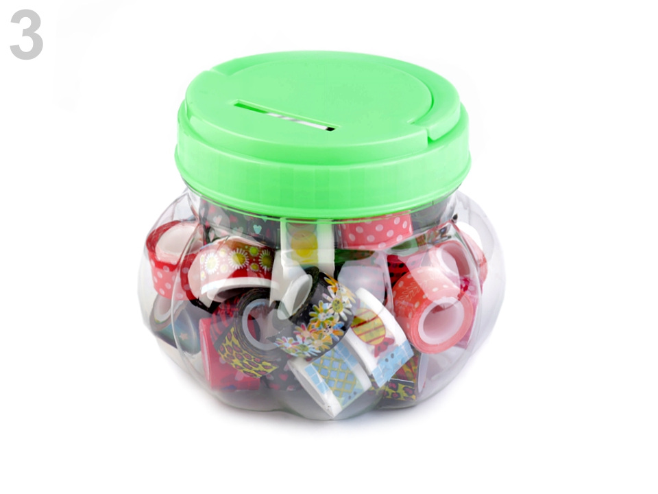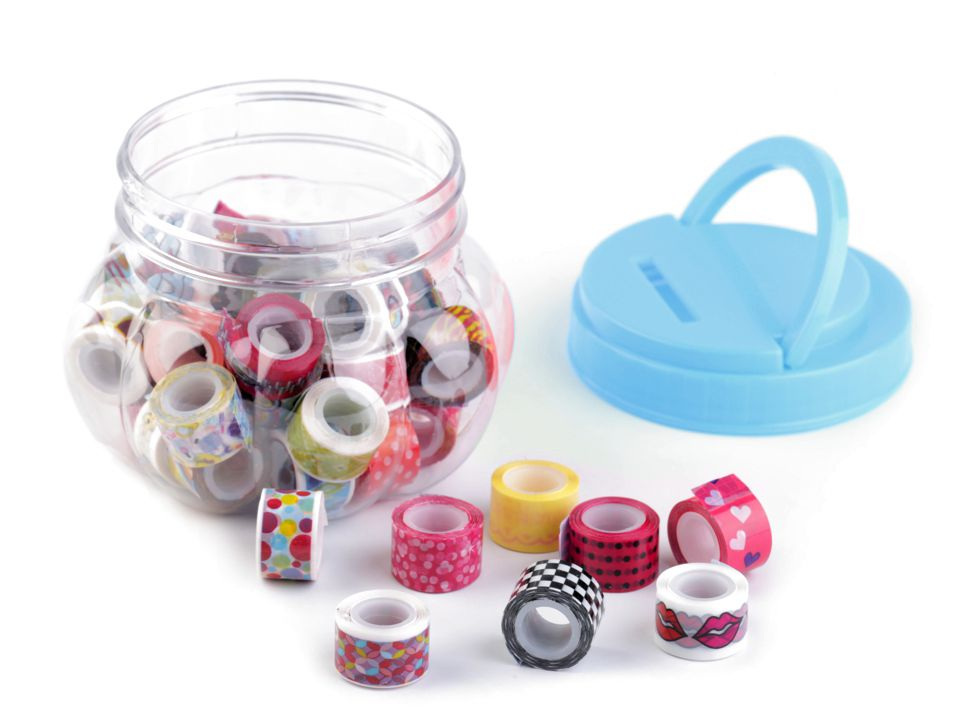 Mix vzorovaných pásek v praktické plastové dóze nadchne každého příznivce scrapbookingu. Využijete je na všech hladkých materiálech, jako jsou dřevo, plast, papír, sklo. Můžete jimi ozdobit staré krabice a vdechnout jim tak nový život. Nalepte je na přáníčka, alba, fotorámečky, nebo s nimi elegantně dozdobte dárkovou krabičku.