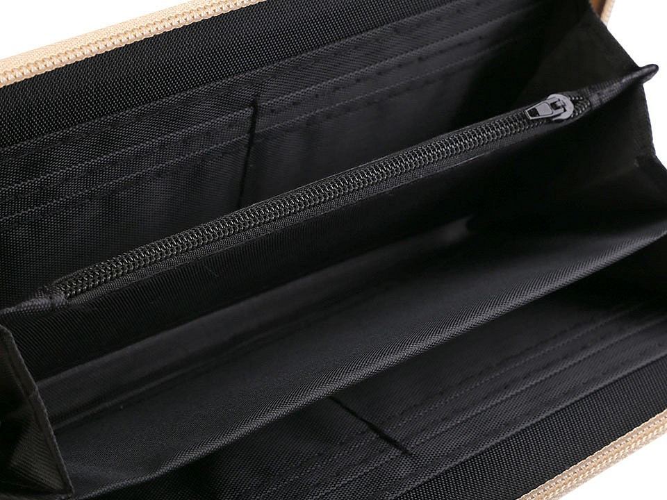 Přihrádek na kreditní karty nebo vizitky je osm. Uvnitř na bocích jsou ještě dvě dlouhé přihrádky, do kterých se vejdou např. účtenky.