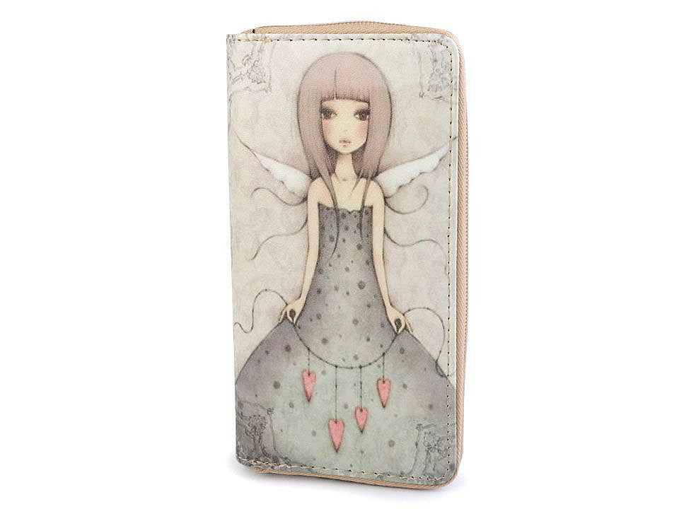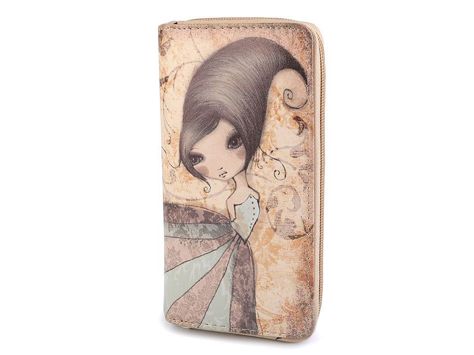 Vintage peněženku si zamilují všechny romanticky založené ženy i dívky. Zdobí ji kouzelné obrázky dívek, které vypadají jako by vystoupily z pohádky. Peněženka je vyrobená z eko kůže a je velmi prostorná. Má vnitřní členění pro vkládání dokladů. Obsahuje tři velké přihrádky na papírové bankovky a uzavíratelnou kapsu na drobné mince na zip.