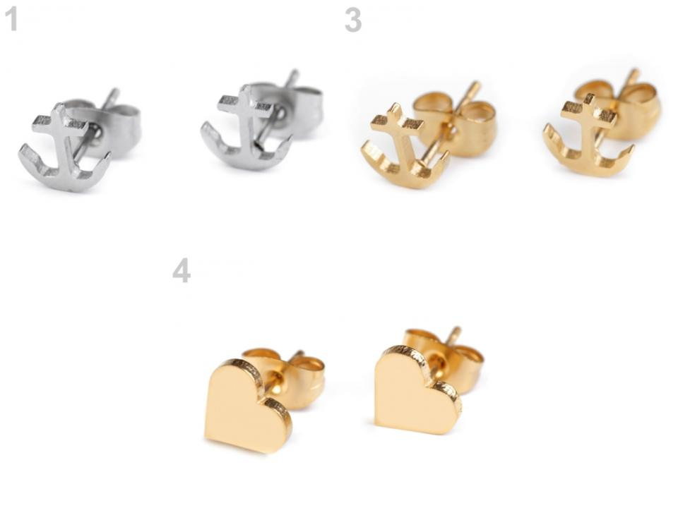 Decentní puzetové náušnice ve tvaru kotvy a srdce vynikají svými čistými liniemi. Jsou vyrobené z kvalitní nerezové oceli. Využijete je na každodenní nošení k jakémukoli outfitu.