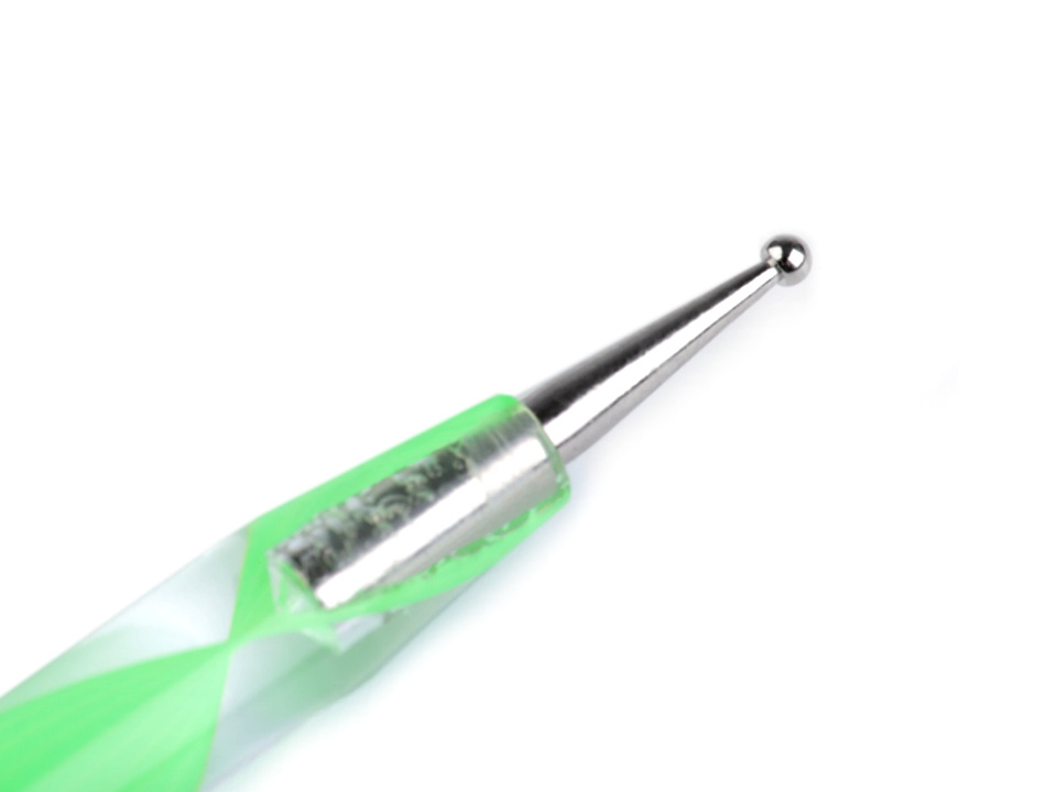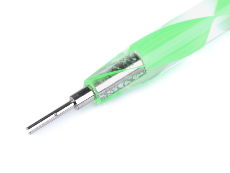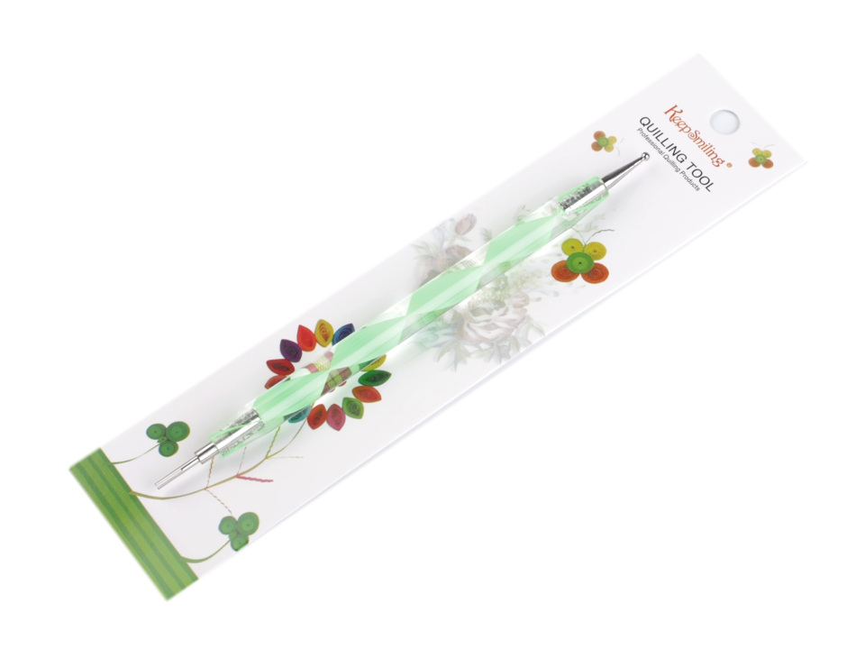 Na jedné straně má pero quillingový hrot, na straně druhé embosovací hrot s kuličkou. Do zářezu v guillingovém hrotu se zasunuje konec proužku papíru a stáčí do ruličky.