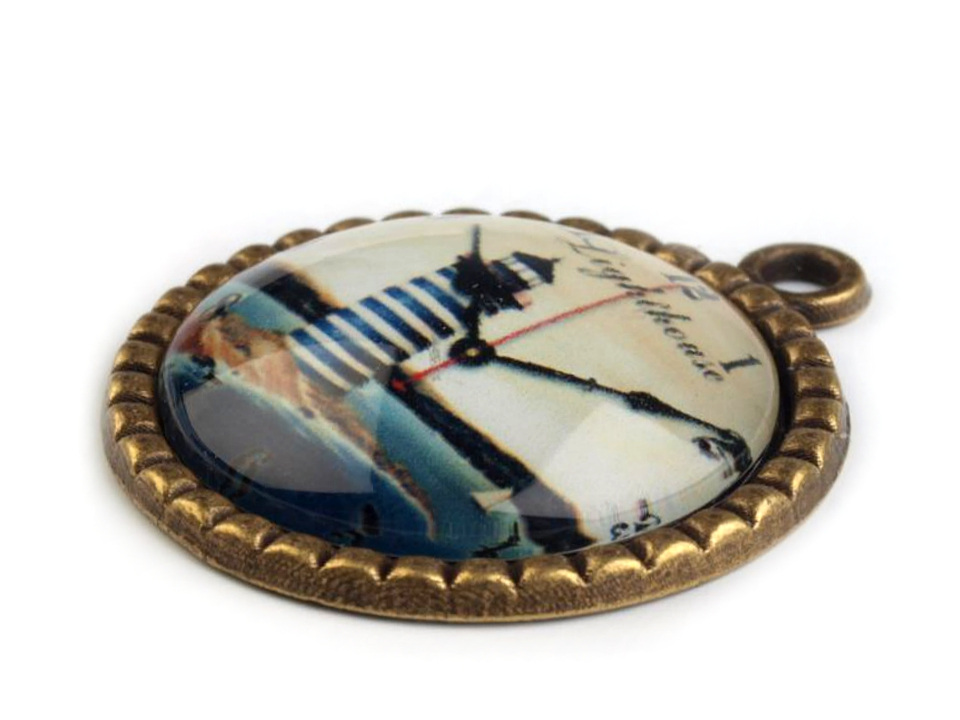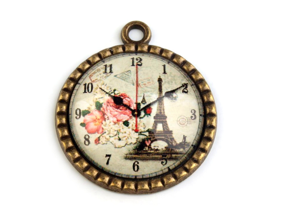 Kovový přívěsek si zamilují všichni romantici a příznivci vintage stylu. Motiv ciferníku je podbarvený přírodní scenérií.