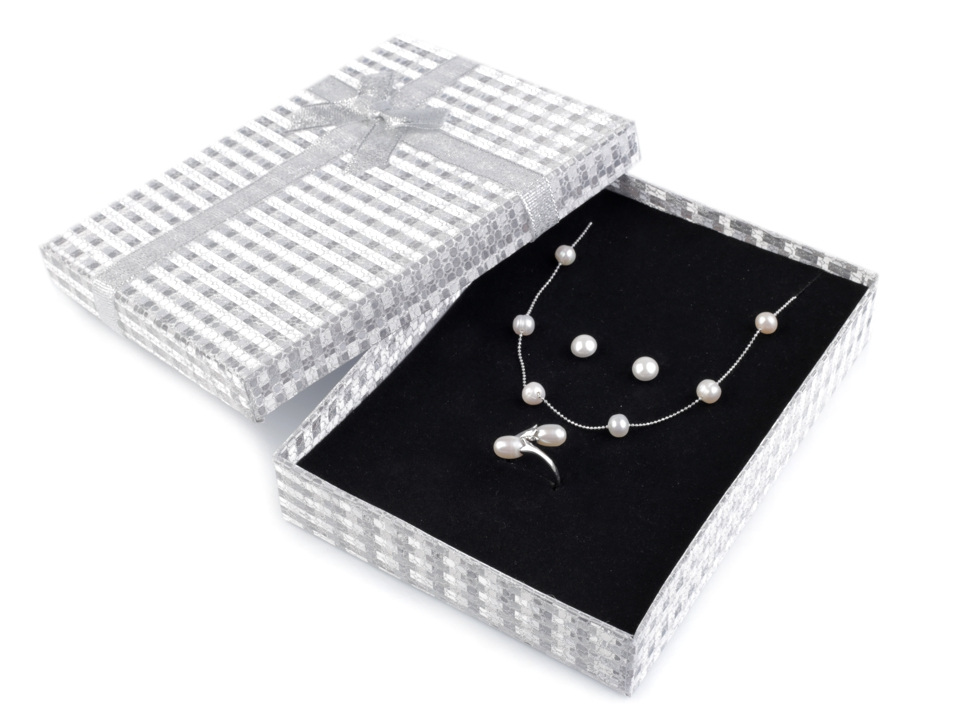 Krabička je velmi pevná. Šperky v ní můžete dlouhodobě uchovávat. Uvnitř je klasická molitanová výplň, která se dá vyjmout. Má výřezy vhodné na umístění celé šperkové sady - na náhrdelník, náušnice a prsten. Do krabičky můžete zabalit i jiné drobné dárky. S touto luxusní krabičkou obdarovaný pocítí, že vám na něm opravdu záleží.