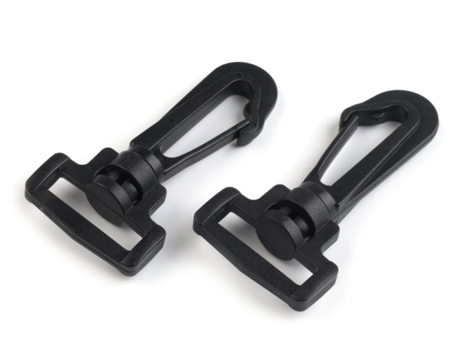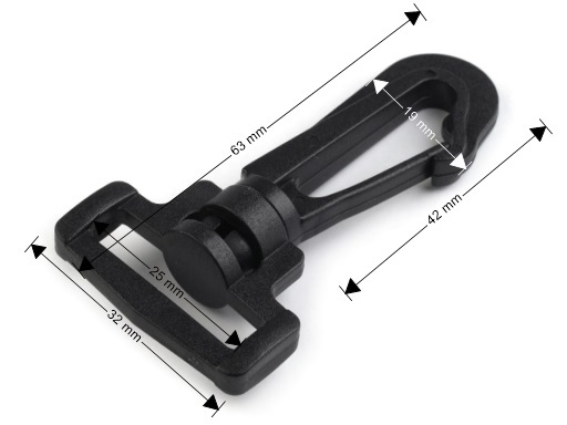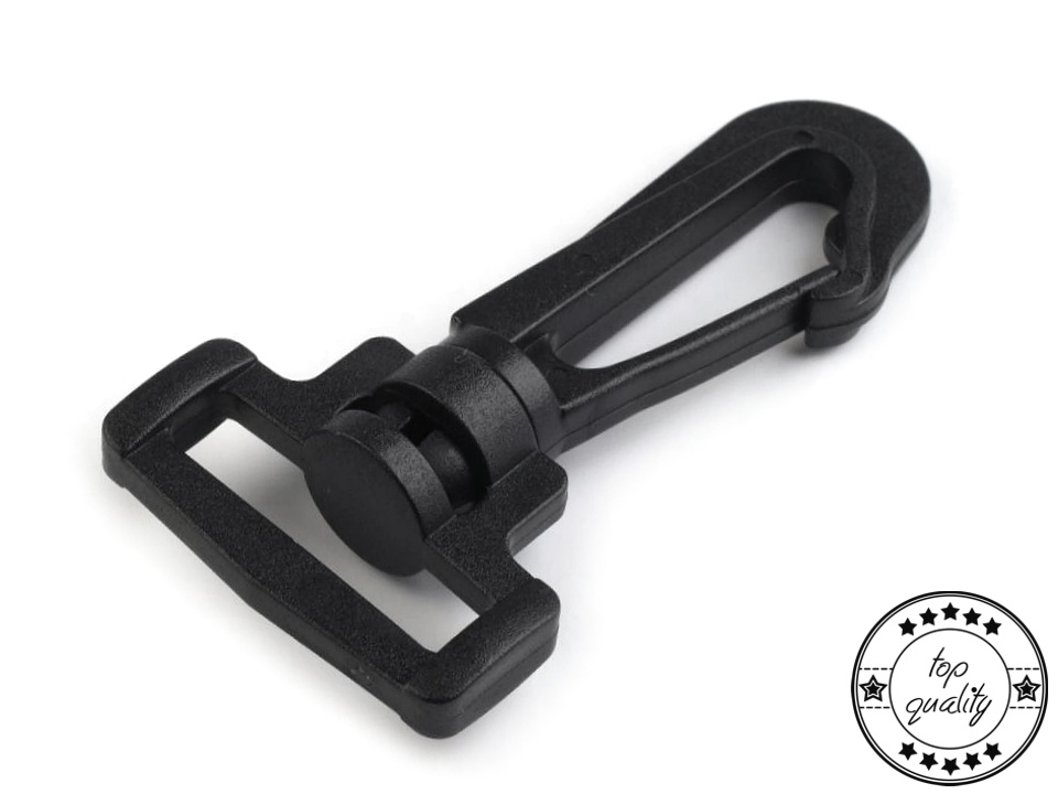 Plastovou karabinu využijete na připevnění popruhů ke sportovním taškám nebo větším kabelkám. Má nízkou hmotnost a je otočná. Rozměry viz foto.