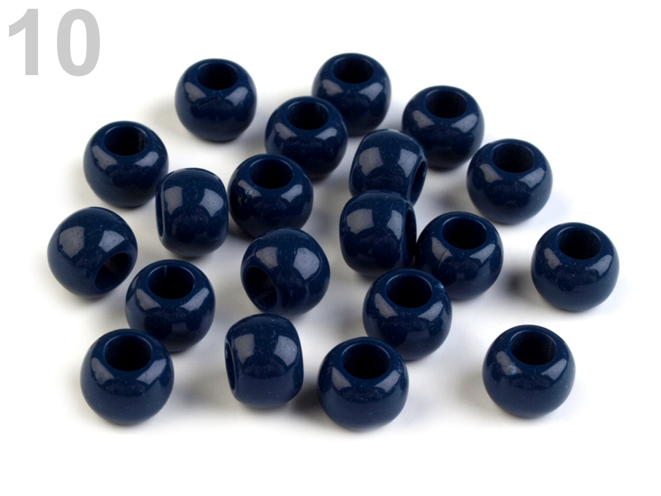 Plastové korálky s velkým průvlekem mají vysoce lesklý povrch.