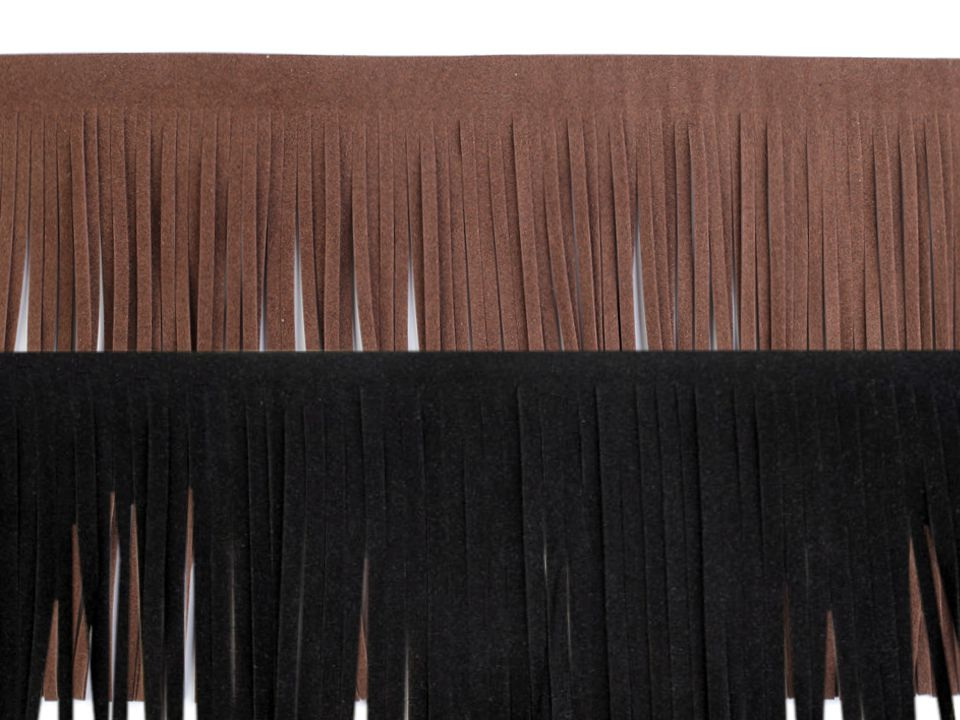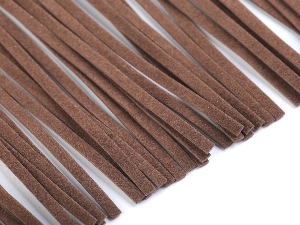 Ozdobné třásně jsou vyrobené z kvalitní eko kůže. Skvěle se hodí na ozdobení oděvů a doplňků do etno či boho stylu. Šířka jednoho proužku třásně je 4 mm.