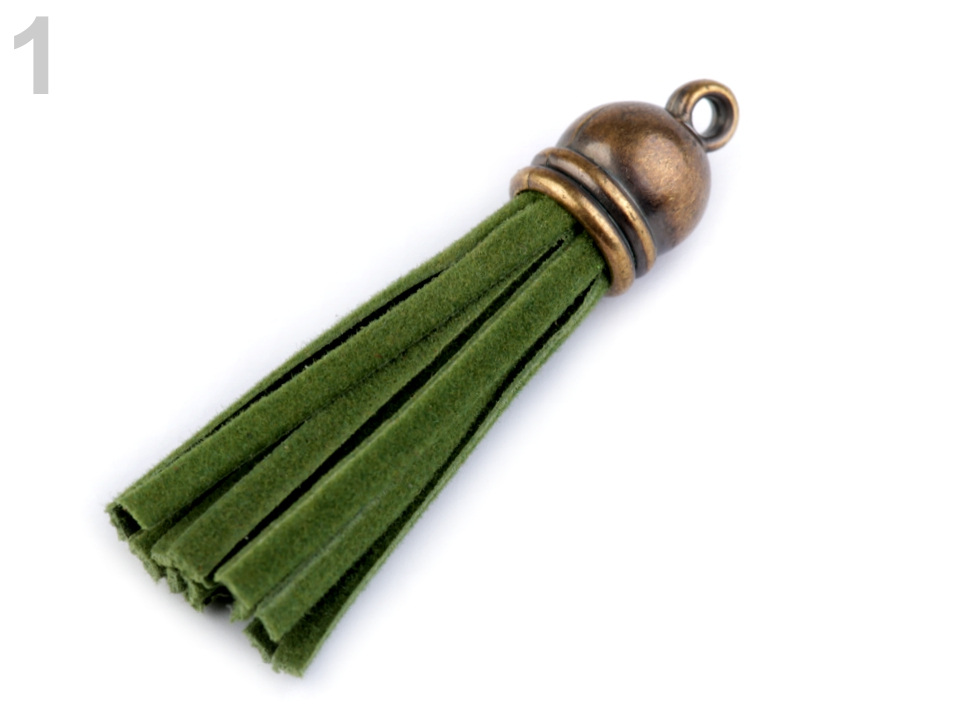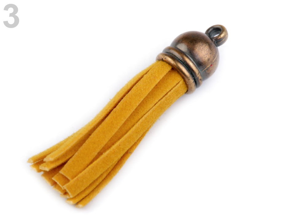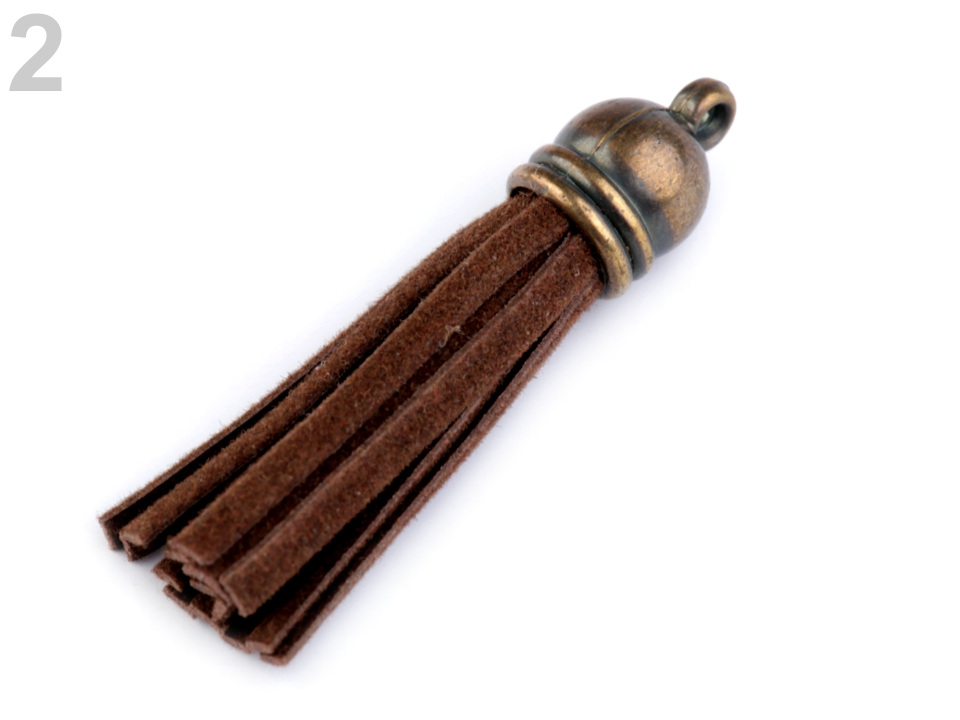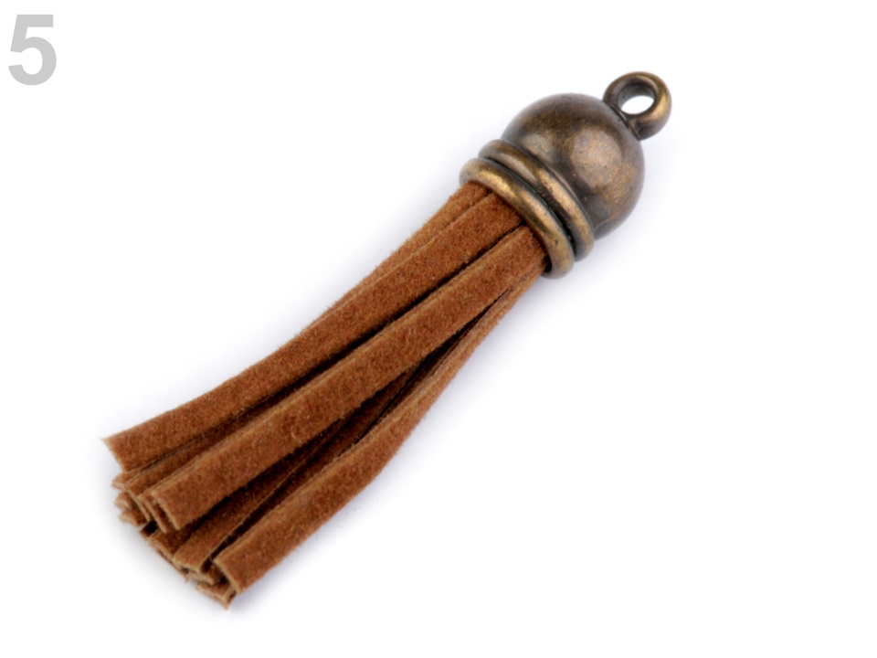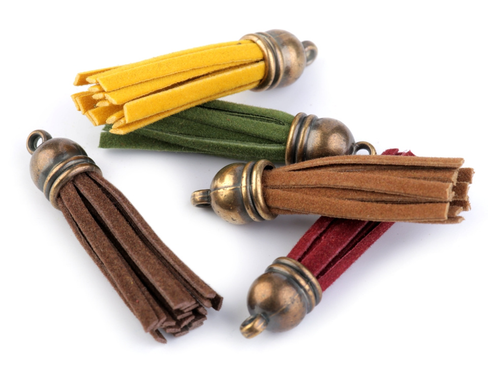 Přívěsek s třásní je vyrobený z eko kůže. Díky plastovému kaplíku s očkem ho můžete kamkoli připevnit.