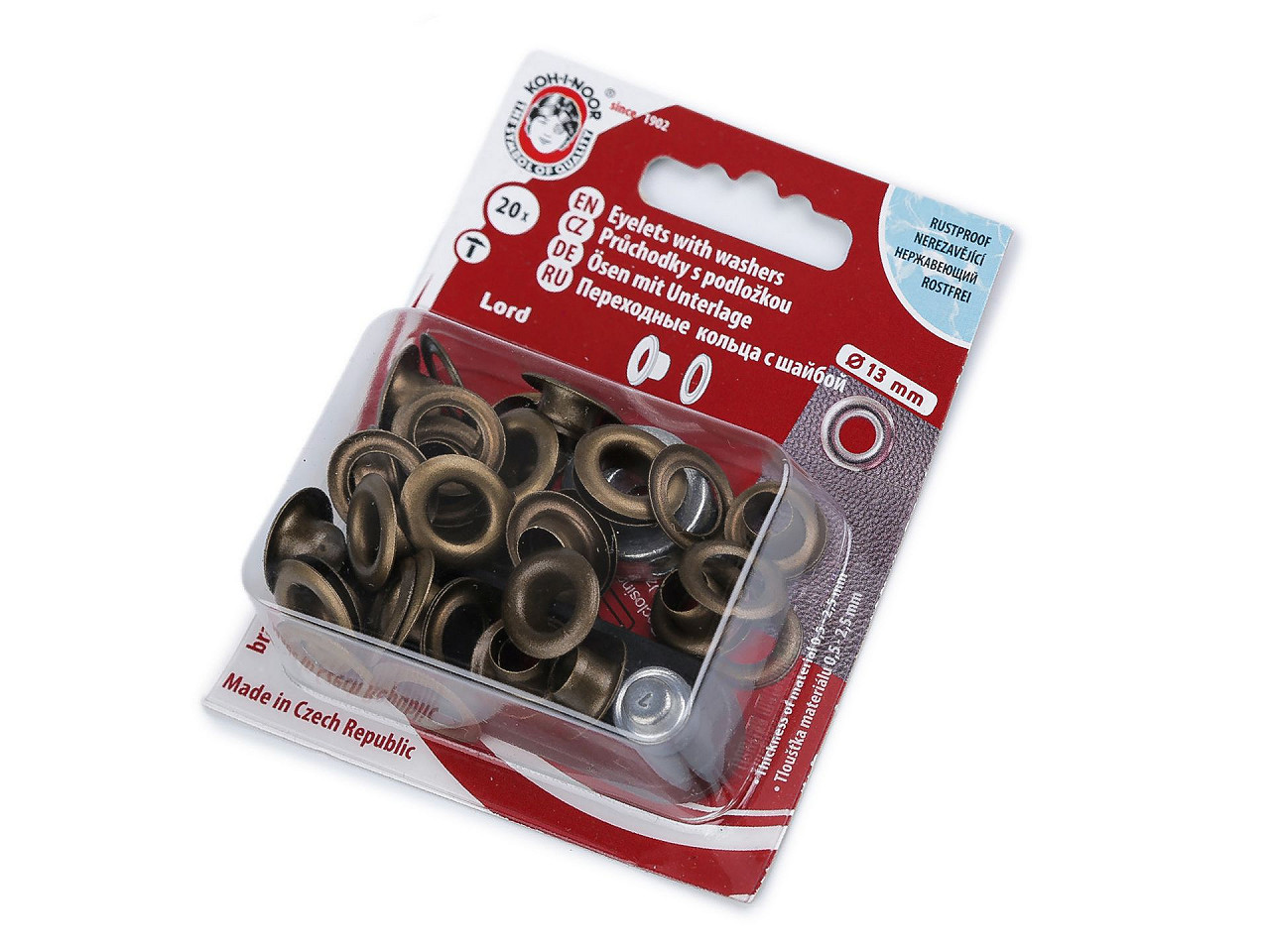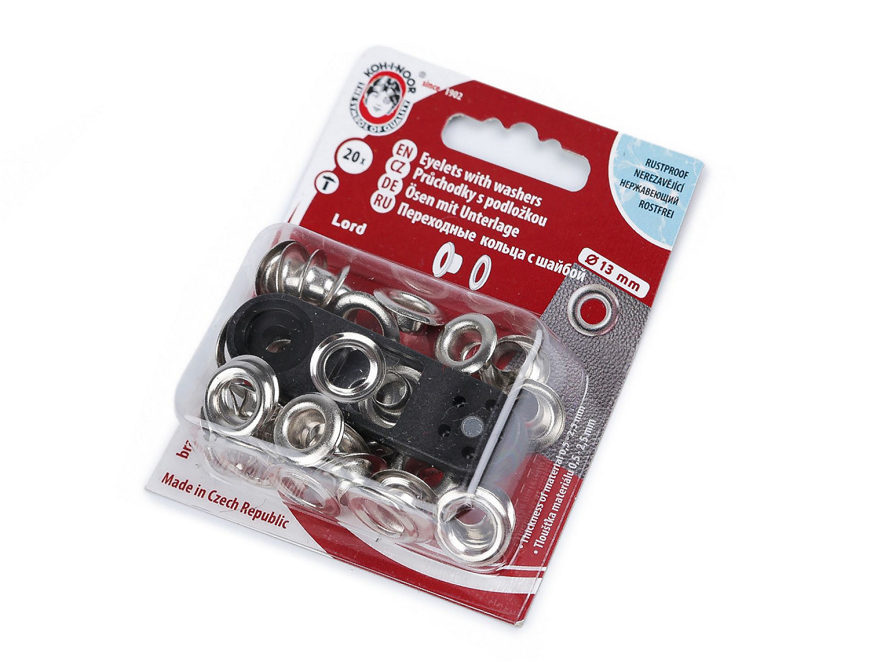 Nýtování se provádí ručně mini lisem, který je součástí balení. V balení najdete 20 ks.