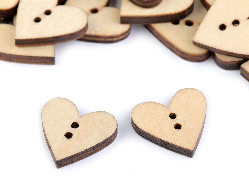 Dřevěné knoflíky ve tvaru srdce využijete ve scrapbookingu na ozdobení rámečků, přáníček, jmenovek, pozvánek, deníků apod. Můžete je použít i do květinových vazeb, které zajímavě oživí.