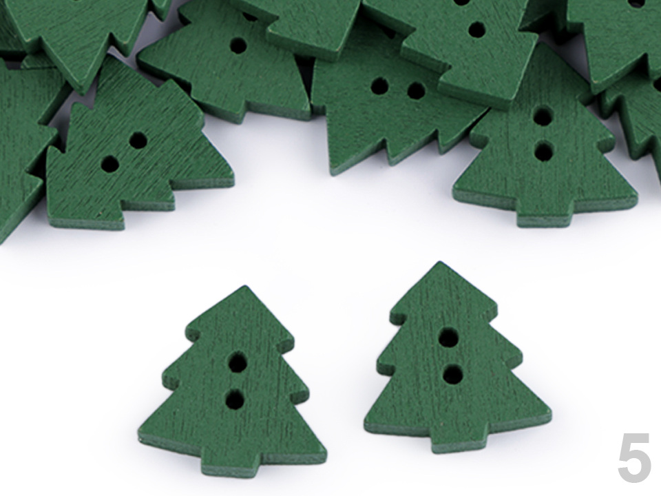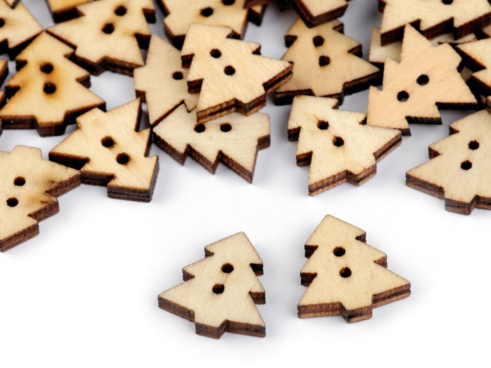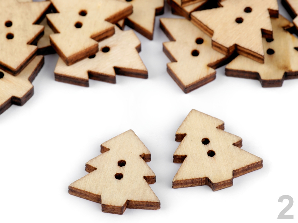 Dřevěné dvoudírkové knoflíky mají tvar stromku a vtáhnou vás do vánoční nálady. Využijete je hlavně ve scrapbookingu na ozdobení rámečků, přáníček, jmenovek, pozvánek či deníků.