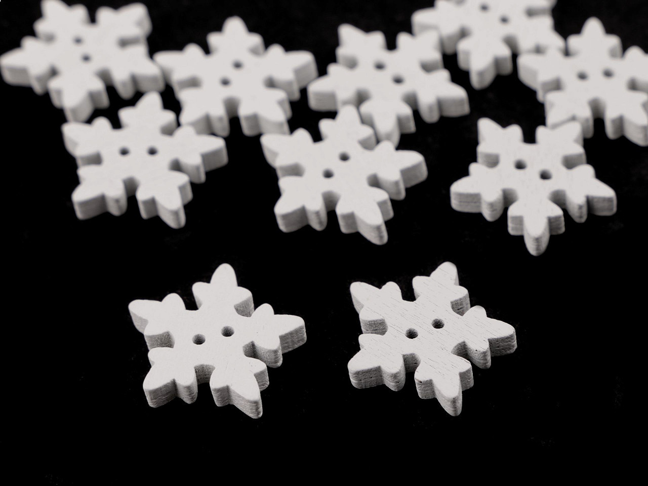 Dřevěné vločky jsou působivou zimní dekorací. Jejich povrch je lakovaný.