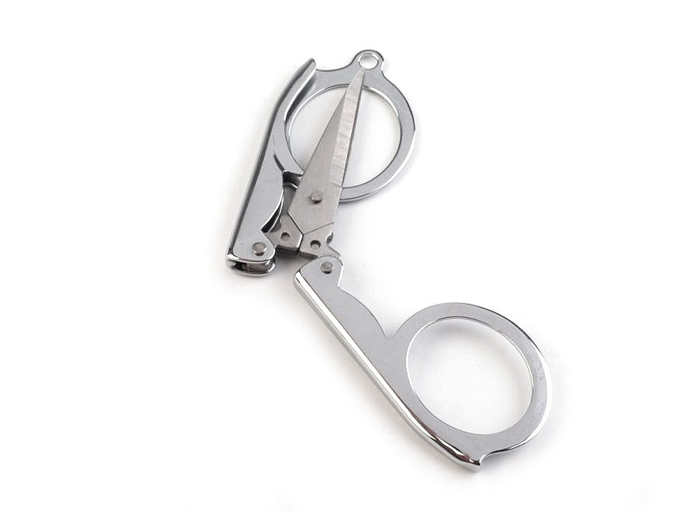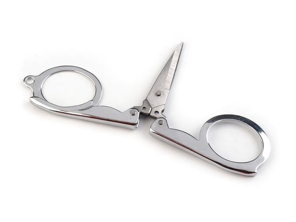 Skládací nůžky oceníte hlavně při cestování. Dají se jednoduše složit, nezaberou moc místa a neporaníte se o ně. Do očka na rukojeti můžete provléct řetízek a nůžky si připnout třeba na klíče.