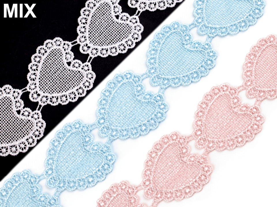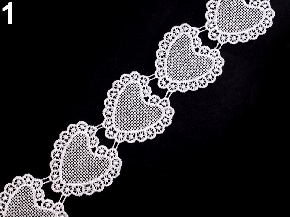 Romantická vzdušná krajka zobrazuje srdce, které můžete rozstříhat a použít i jednotlivě.