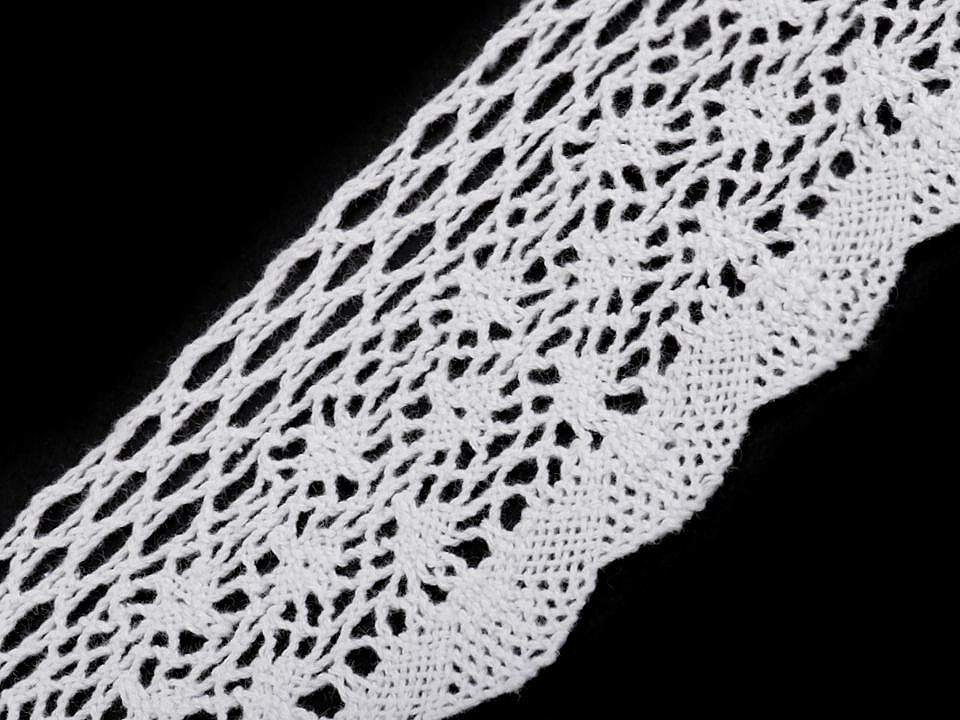 Použití: Krajku můžete použít na ozdobení lemů ubrusů, deček, polštářů a dalších bytových doplňků. Je vhodná i na oděvy, například na halenky nebo sukně.