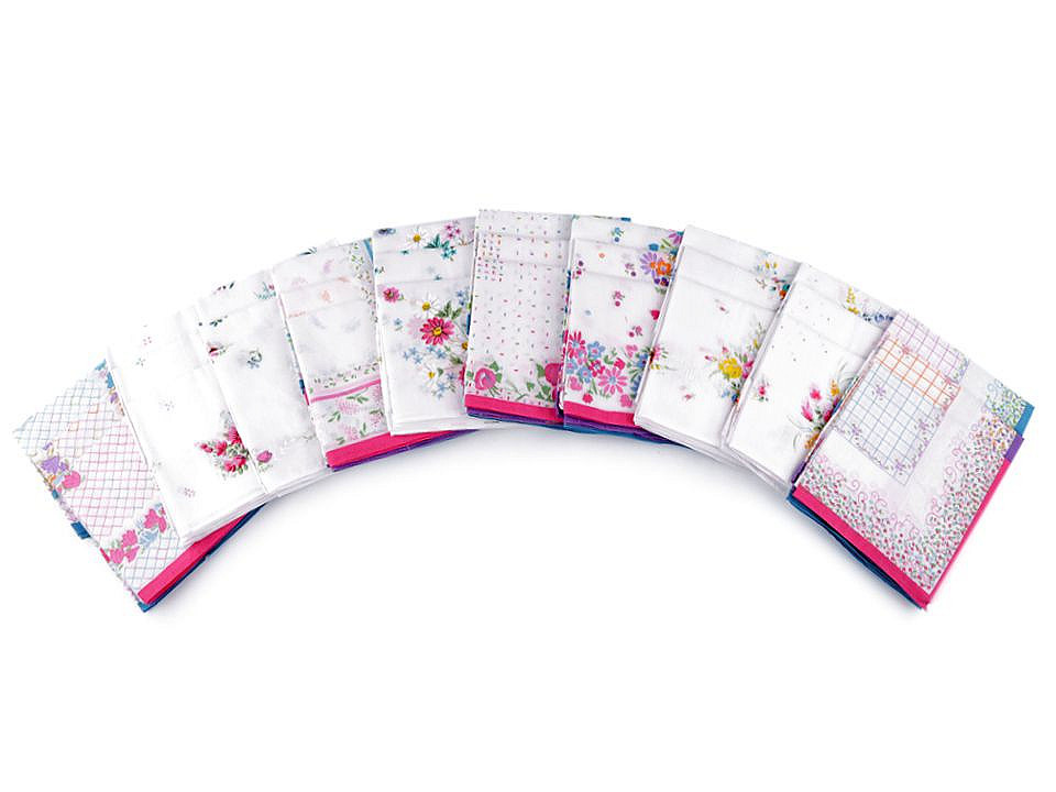 Kvalitní bavlněné kapesníky s květinovým potiskem. Pokud se vám zasteskne v sychravých dnech po rozkvetlých loukách, budou ideální volbou. Potěší každou ženu či dívku.