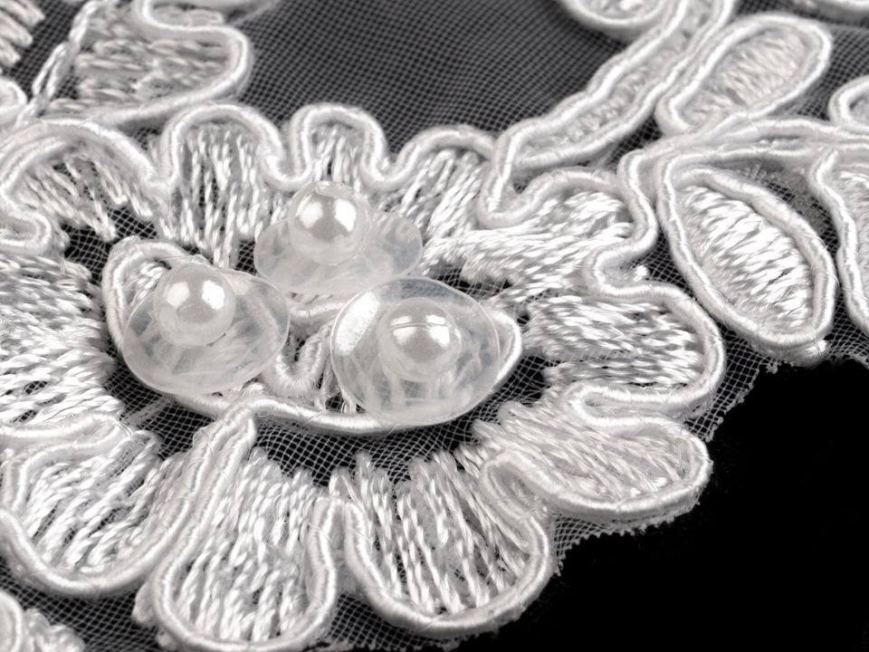 Použití: Vsadku můžete našít na svatební šaty, kde vynikne v celé své kráse. Je vhodná také na společenské a plesové šaty, halenky, ozdobení psaníček, tašek apod. Můžete ji i nalepit jako dekoraci na sklo, například na skleničky.