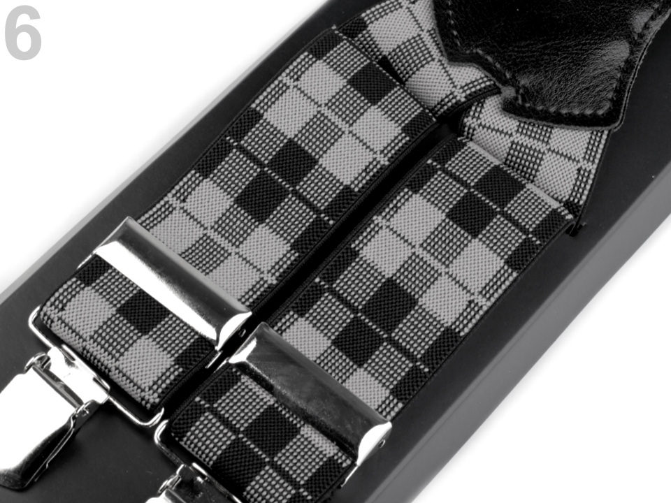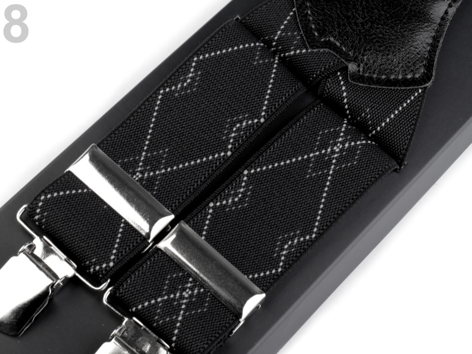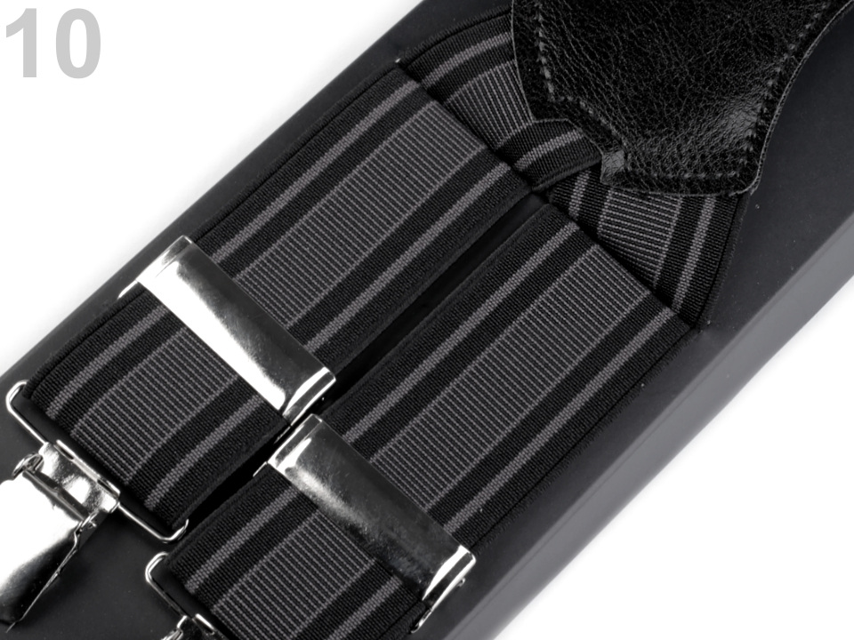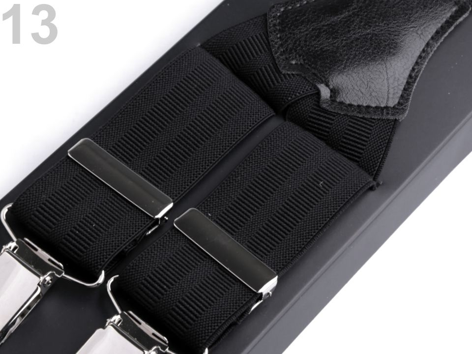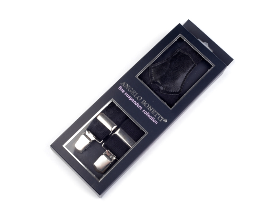Pánské šle z kolekce Angelo Bonetti s možností regulace délky. Jsou kvalitní, české výroby, elastický materiál umožňuje pohodlné nošení. Oceníte je i díky pravé kůži, která jim dodává stylový vzhled. Mají tři žabky - dvě vpředu a jednu vzadu.