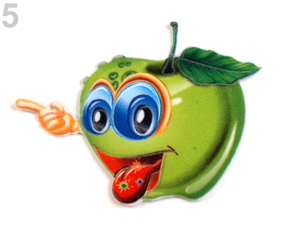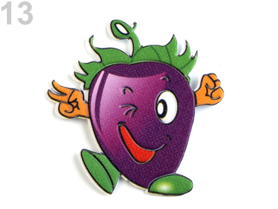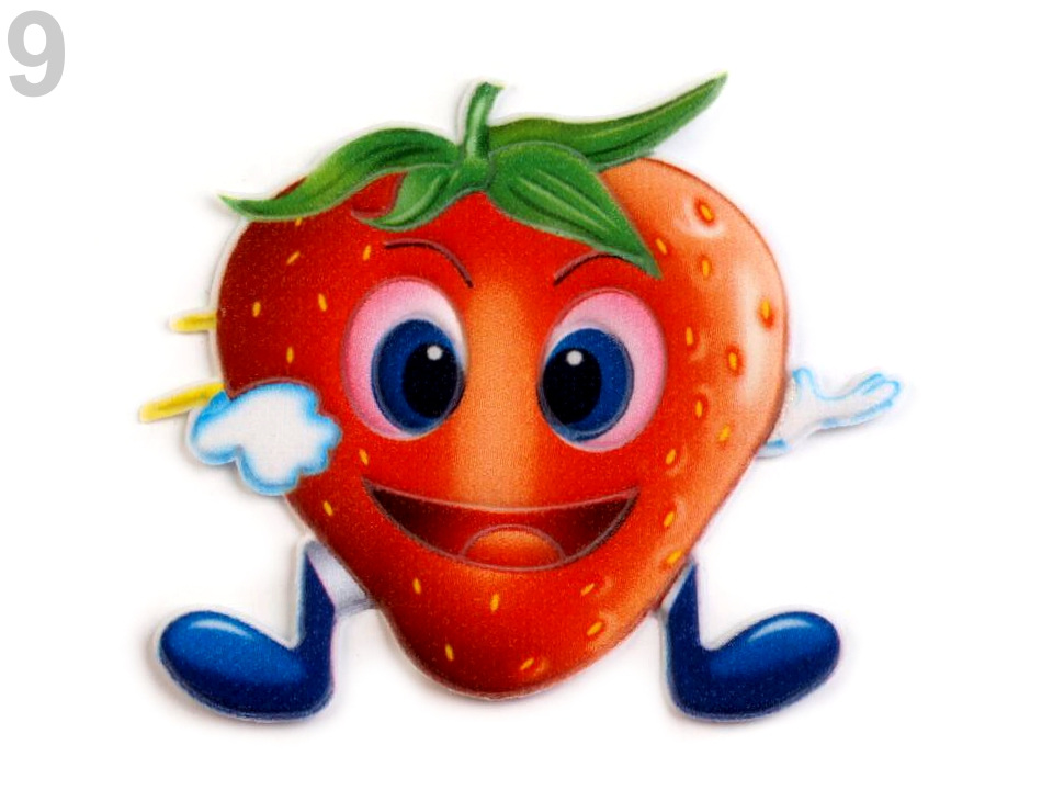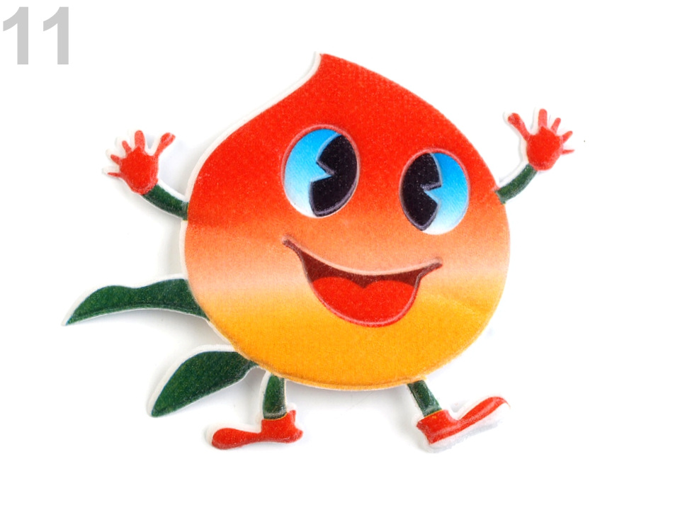 Nažehlovačky s motivem postaviček ovoce jsou zajímavé svým detailním potiskem. Mají jemný třpyt. Díky nažehlovačkám můžete vesele oživit oblečení nebo je použít jako záplatu. Velmi dobře drží.