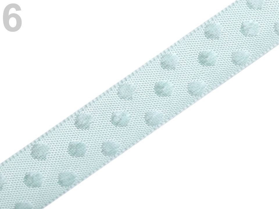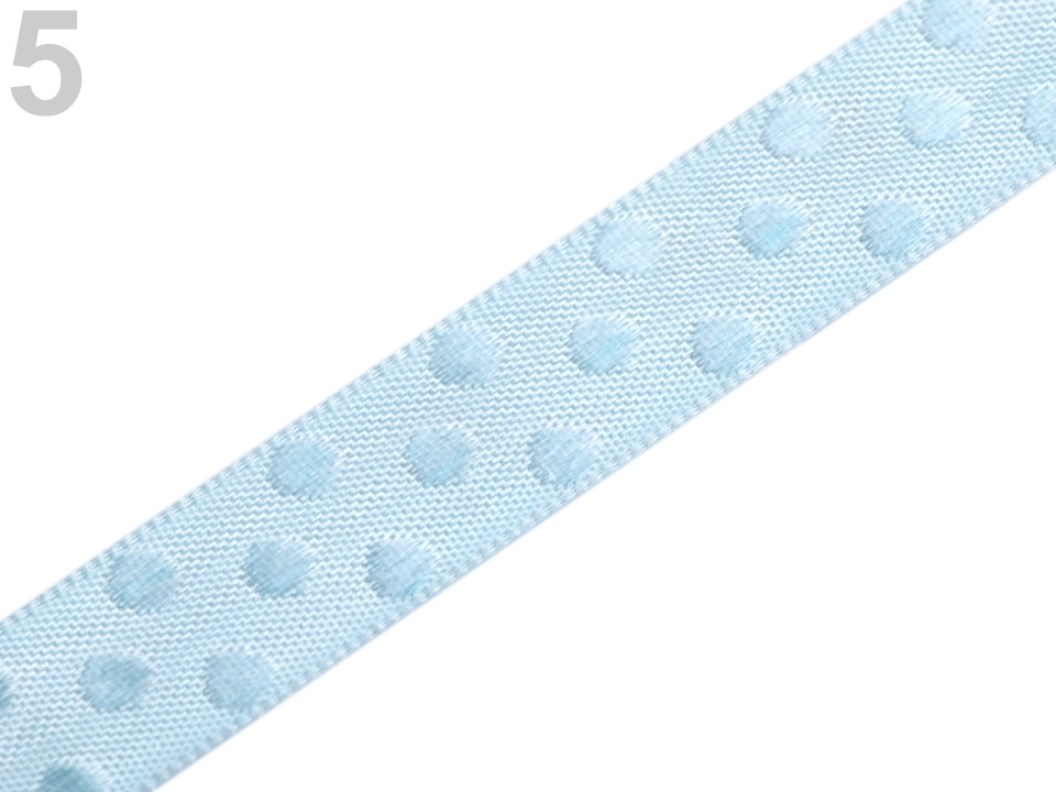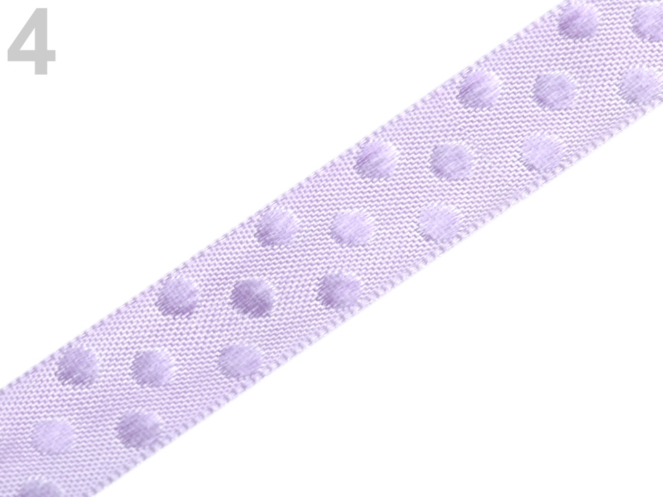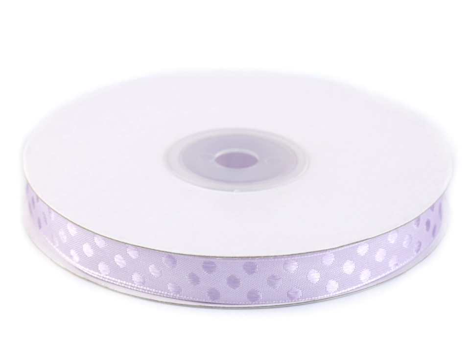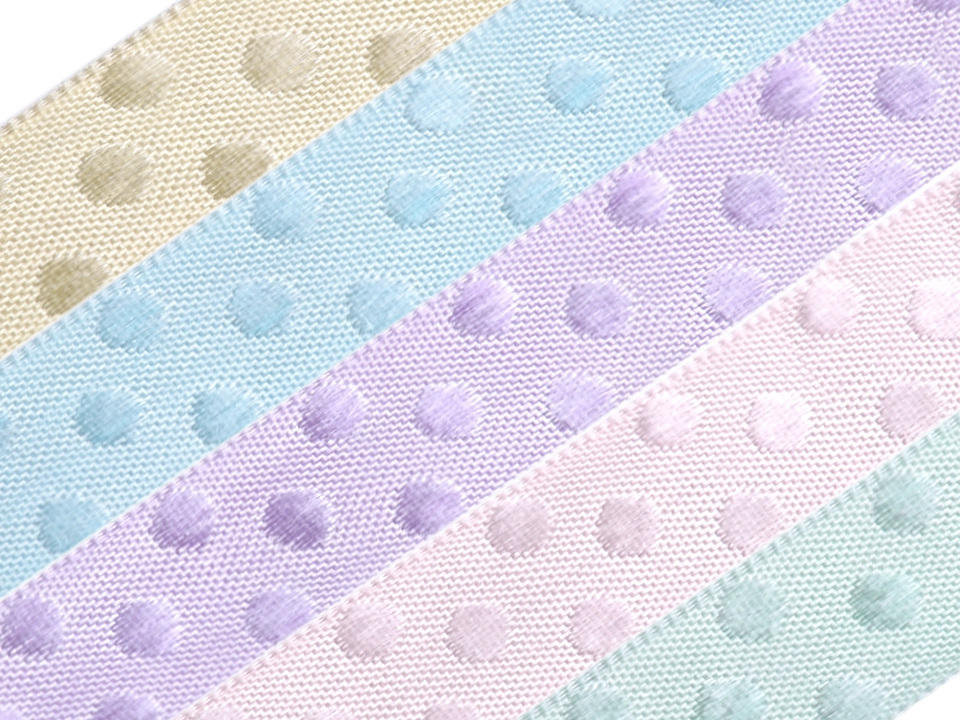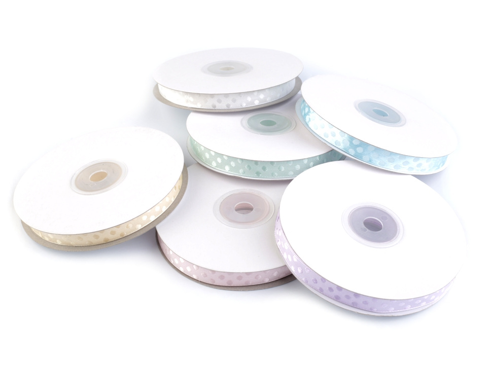 Saténová stuha s puntíky působí díky jemným pastelovým barvám decentně. Puntíky se lesknou.